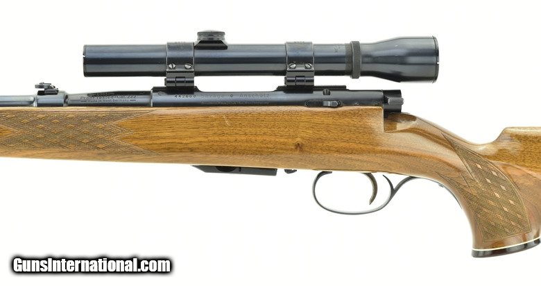 Savage/Anschutz 153 .222 Rem caliber rifle. Deluxe West German made sporter. Barrel is dated 1963. Rifle has a Weaver K3 scope. Has some field wear otherwise very good condition.