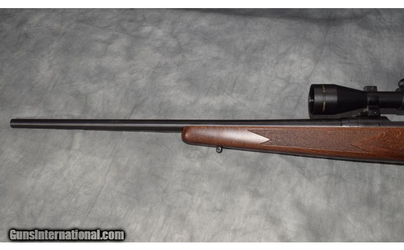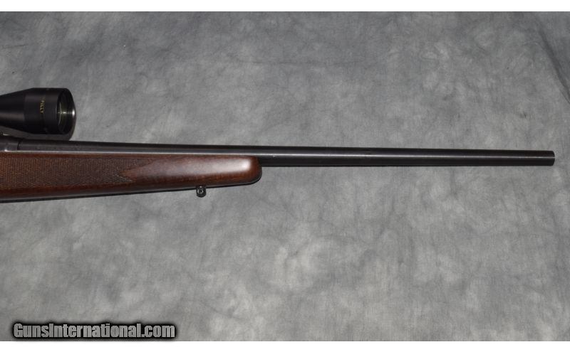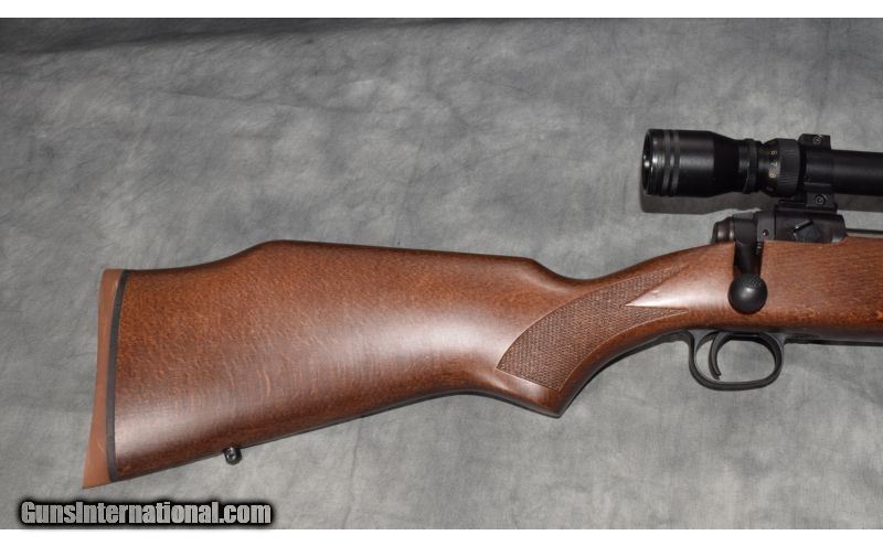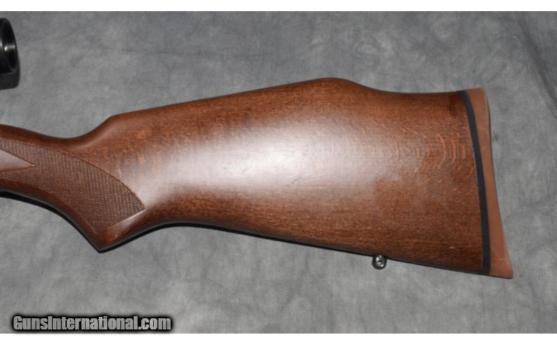 Description: An excellent example of the 110, pre-Accutrigger, with American walnut stock. The barrel is threaded into the receiver and fixed via a large locknut located just ahead of the receiver, with a recoil lug sandwiched between the two. This system allows barrels to be changed or headspace to be adjusted relatively easily, making for an extremely accurate yet inexpensive rifle. It is in very good shape overall, with minor wear on the barrel. SOLD Caliber Info: .25-06 Remington. Chambers: 4 round bolt action repeater. Metal Condition: Good overall, minor finish wear on barrel. Wood Condition: Very good, minor handling wear near grip. Bore Condition: Very good, bright with crisp rifling. Barrels: 22 inch blued. Triggers: Single. Stock: American walnut, with checkered forend and pistol grip. Stock Dimensions: 13.75 inch LOP, 44 inch overall. Fore End: Nice crisp textured side checkering. Butt Pad: Factory hard rubber. Weight: 7lbs 9oz. Sights: Simmons 8-point, 3-9x40 scope. Item Location: Chesterfield, MI |