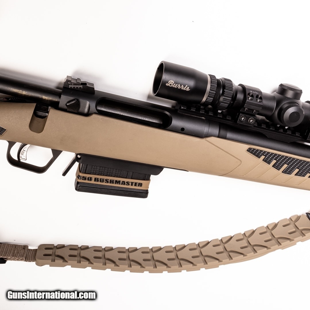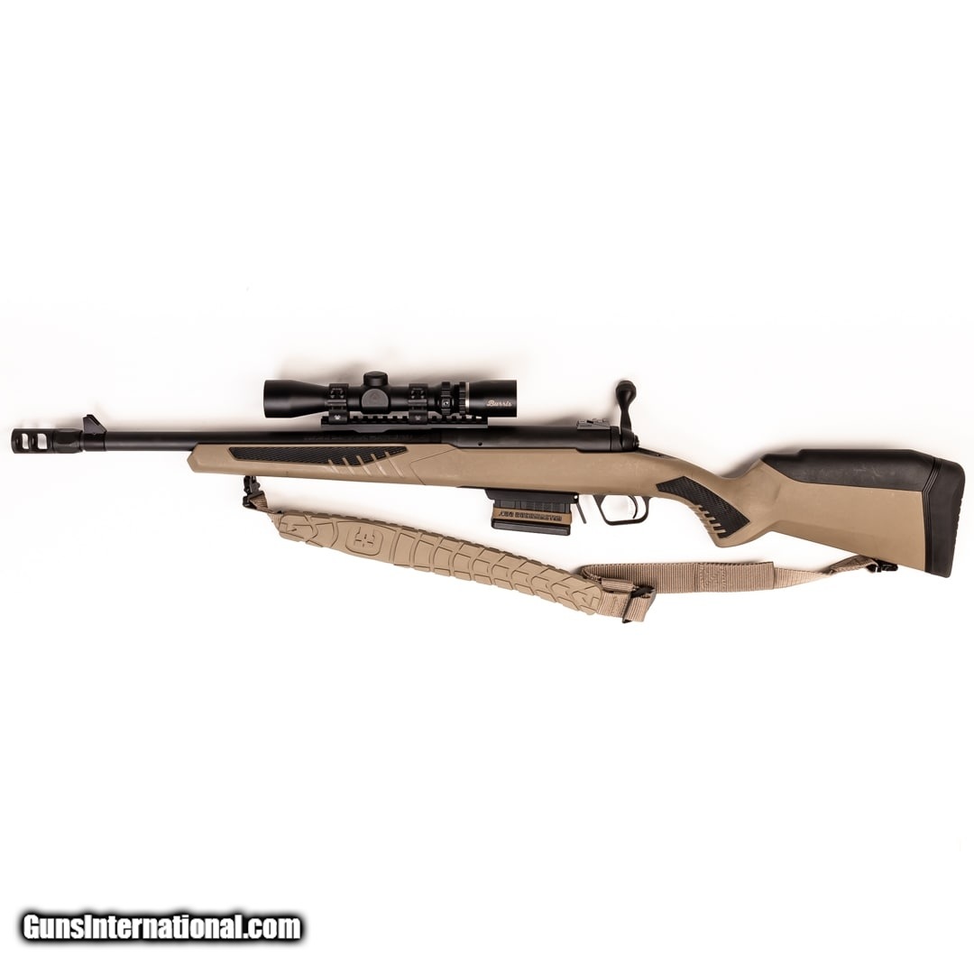 Description: Guns Listing ID: 497720 For sale is this Savage Arms Model 110 Scout. It was made to be a natural extension of the user‚‚s body for quick and accurate shots from various positions. It offers the feel, fit, and function of a custom rifle at a fraction of the cost. Features include a rugged synthetic stock, carbon steel barrel, and a user-adjustable AcuTrigger. The length-of-pull and comb height are also adjustable thanks to the AccuFit system. The attached rail is ready for your favorite optics and accessories. This Model 110 Scout is equipped with a Burris Scout 2-7x32mm rifle scope and a padded rubber sling. The owner‚‚s manual and three 5-round magazines are include SOLD Manufacturer: SAVAGE ARMS Model: 110 SCOUT Caliber Info: .450 BUSHMASTER Condition: Used - Certified Barrels: 16 BARREL Finish: FDE/BLACK |