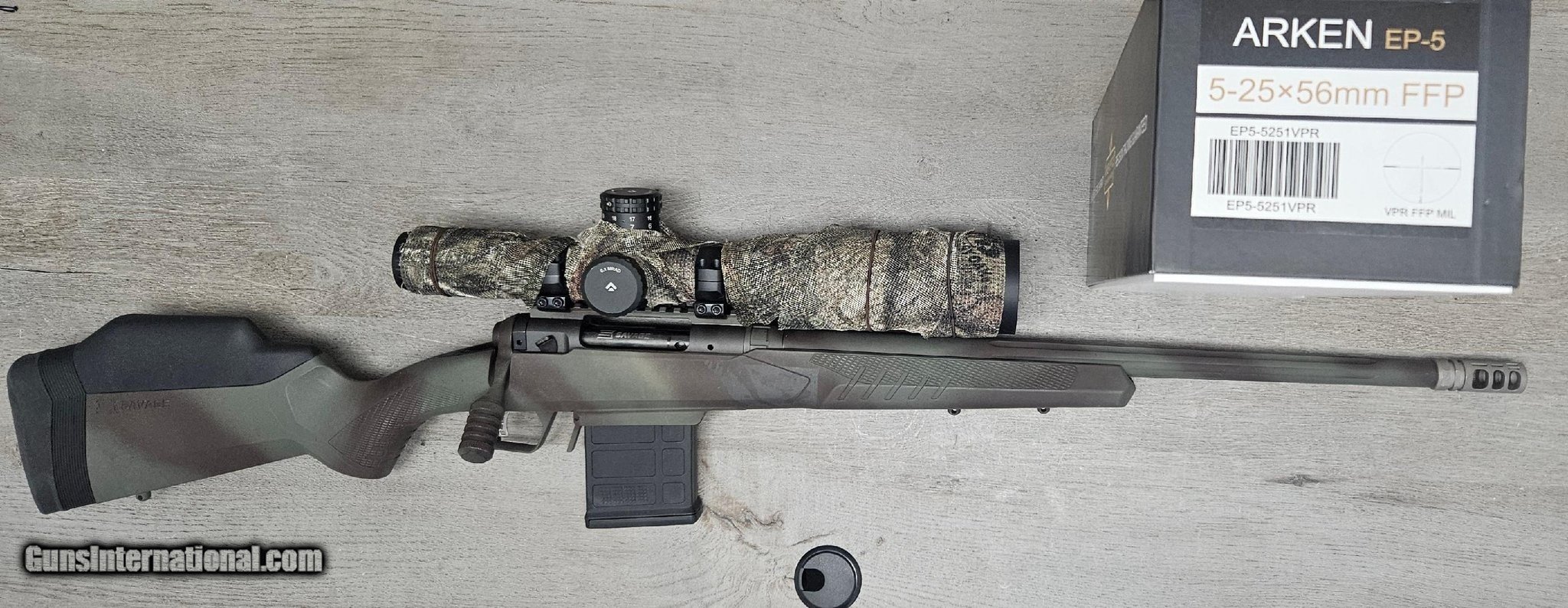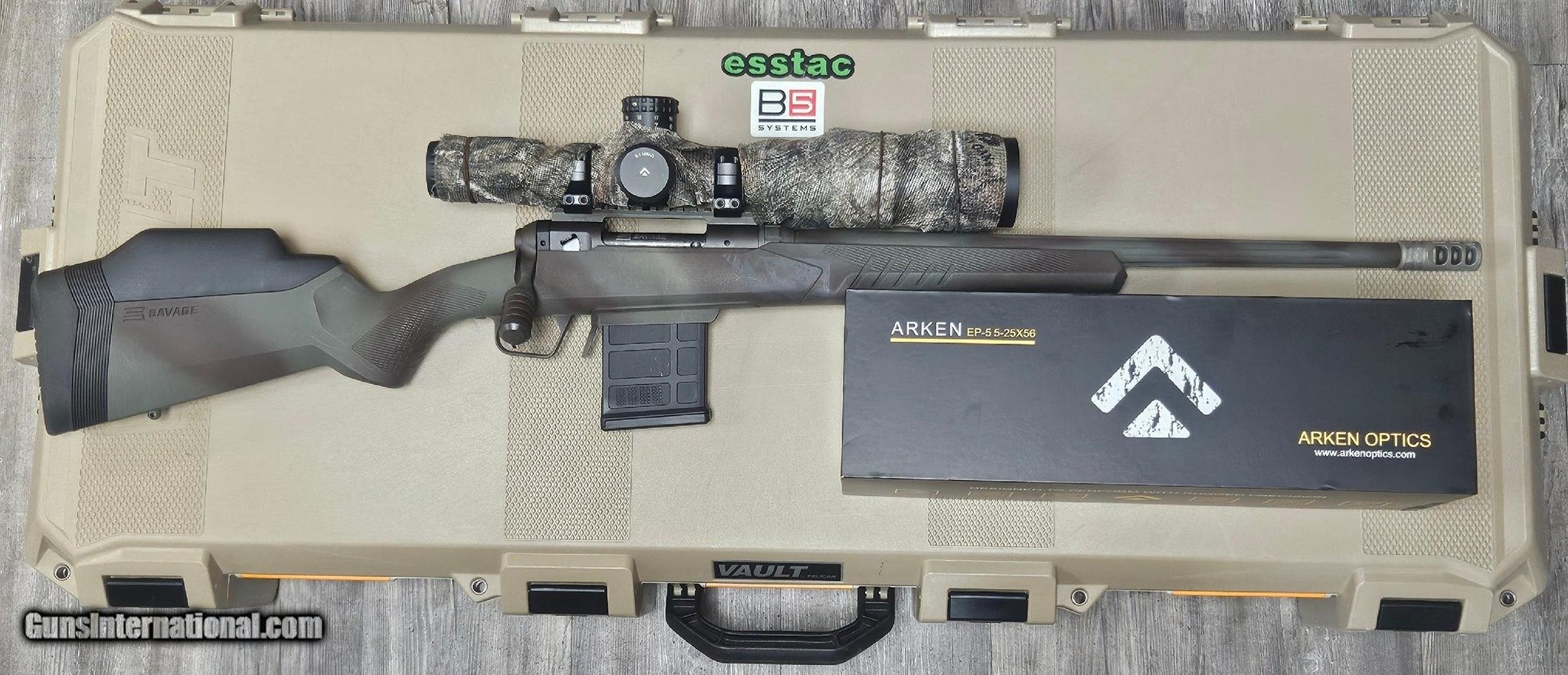 Description: Guns Listing ID: 573242 GREAT PACKAGE DEAL! COMES WITH A HIGH QUALITY VAULT AIRLINE APPROVED HARDCASE. THIS RIFLE FEATURES AN ARKEN EP-5 SCOPE (5-25X56mm FFP). THE FINISH HAS BEEN COVERED WITH A CAMOFLAGE SPRAY. THE BOLT HANDLE DID HAVE A SMALL AMOUNT OF SURFACE RUST THAT CLEANED UP WITH OIL. PICTURES SHOW IT BEST :) Manufacturer: SAVAGE ARMS Model: 110 TACTICAL Caliber Info: .308 WIN Condition: Used - Non-Certified Barrels: 20" BARREL Action: BOLT ACTION Finish: black Price: $1,100.99 Contact Seller |