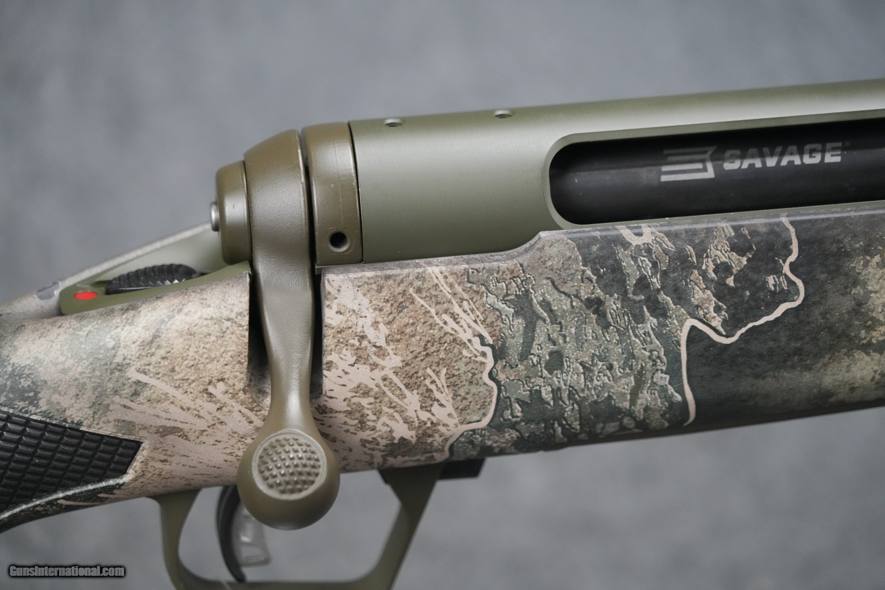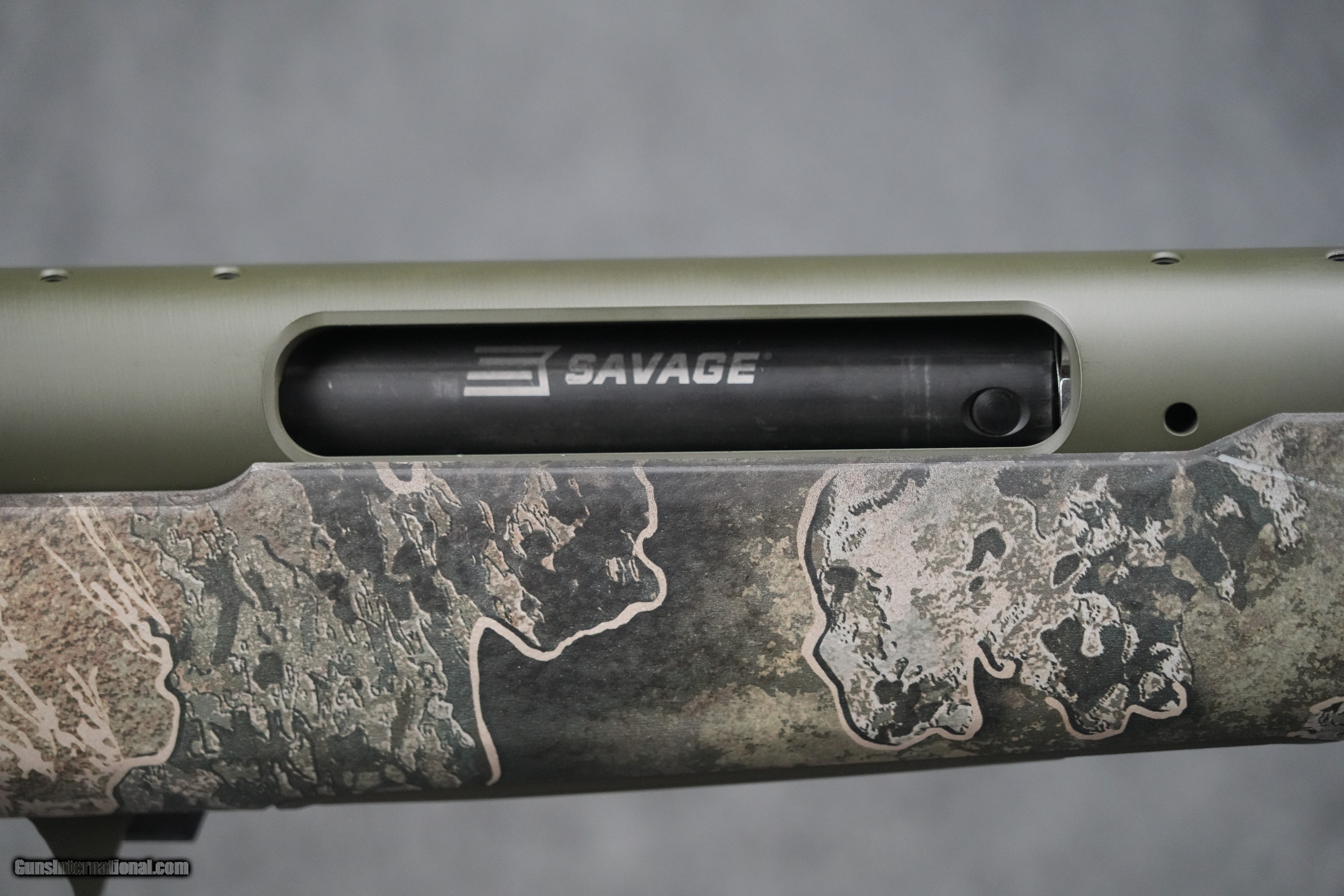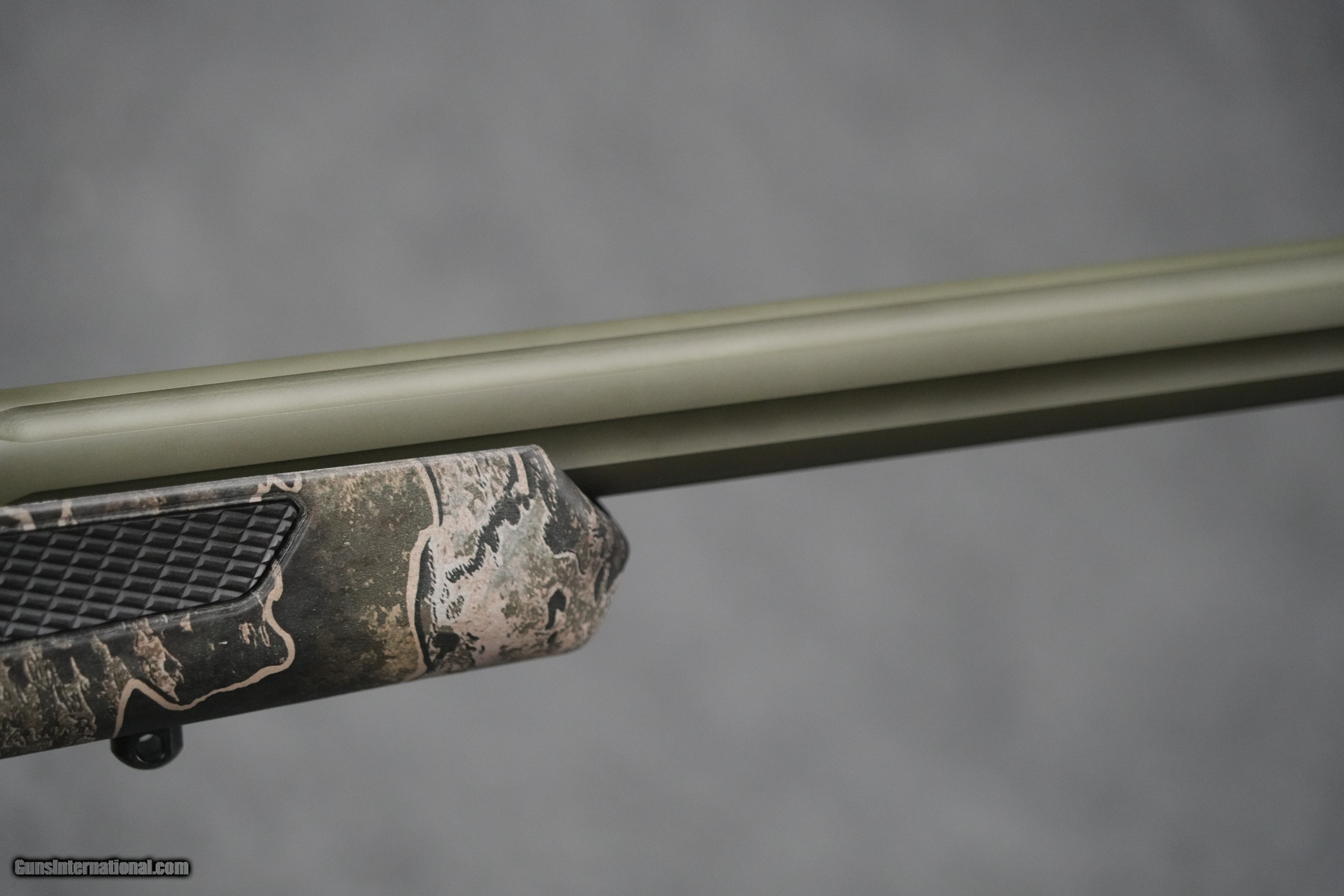 Description: 110 TIMBERLINE Low temperatures. Dry air. Low pressures. Long shots. With the new Savage® 110 Timberline, they’re all attainable. The rifle is built to maximize accuracy with a fluted barrel, overmold surfaces, target crown, and omni-port muzzlebrake. The Model 110 action is secured three-dimensionally along its entire length within the AccuStock™ internal chassis and AccuFit™ system. Plus, the user-adjustable AccuTrigger™ offers a crisp, clean pull critical for making precise shots at any distance. The OD Green Cerakote on the barrel, receiver and other critical parts protects against corrosion and harsh terrain for closing out the perfect hunt. FEATURES Factory blueprinted action Medium profile barrel contour with straight fluting, threaded (5/8-24”), with omni-port muzzlebrake. Target crown Available in right- and left-hand configurations Realtree Excape Camo AccuFit™ Stock OD Green Cerakote barrel, receiver, and critical components 1.5-4 lb user-adjustable AccuTrigger Detachable box magazine Drilled & Tapped Receiver (8-40) Action Bolt Ejection Port Right Barrel Color O.D Green Cerakote Barrel Finish Cerakote Barrel Length (in)/(cm) 22 / 55.880 Barrel Material Carbon Steel Caliber 7mm PRC Magazine Quantity |2/2| Magazine Capacity 2 Hand Right Length of Pull (in)/(cm) 12.75 - 13.75 / 32.385 Magazine Detachable Box Magazine Overall Length (in)/(cm) 43.375 / 110.173 Rate of Twist (in) 1 in 8 Receiver Color O.D Green Cerakote Receiver Finish Cerakote Receiver Material Carbon Steel Type Centerfire Stock Color Camouflage Stock Finish Matte Stock Material Synthetic Stock Type Sporter Weight (lb)/(kg) 8.15 / 3.70 SOLD Rifle Caliber: 7mm PRC Manufacturer: Savage Arms Model: 110 Timberline Barrel Length: 22" Barrel Condition: BRAND NEW |