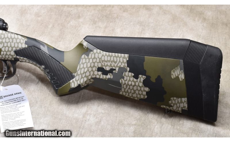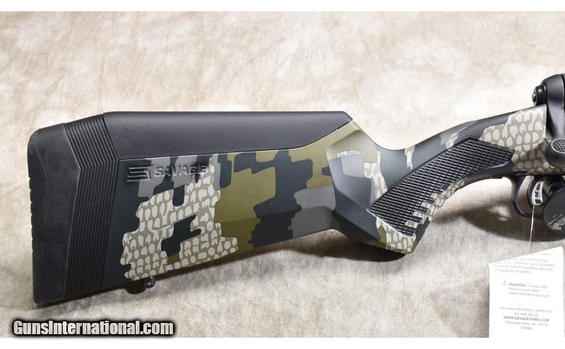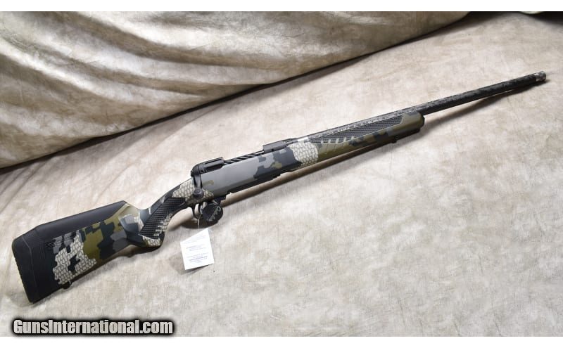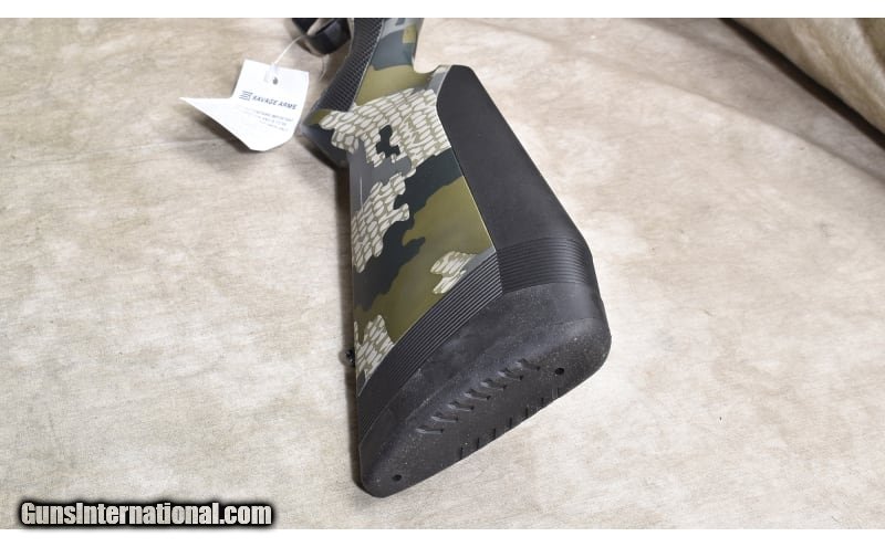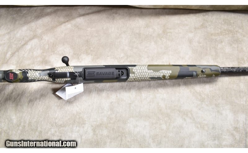 Description: This light rifle features a carbon-wound barrel, threaded muzzle, fluted bolt, and full camouflage stock. It is a Special Buy from SAveage Arms and could pass for new. 6.5 Creedmoor SOLD Chambers: 4 rounds Metal Condition: As New in Box. Wood Condition: As New in Box. Bore Condition: As New in Box. Barrels: 22-1/4 inch carbon fiber with threaded muzzle. Triggers: Factory Accutrigger Stock Dimensions: 13-1/2 inch LOP as shown. It is adjustable with furnished shims. Butt Pad: Soft rubber recoil pad. Weight: 6 lb - 3 oz. Sights: Scope ready. Item Location: Rogers |