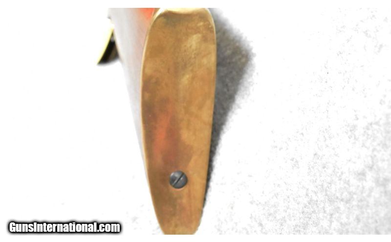 Description: Celebrating the 75th Anniversary of the model 1895 (1895-1970), left side of receiver engraved with some fine scroll and oval marked "Savage Arms", right side has matching scroll with oval marked "1895", right side of stock has brass p .308 Winchester SOLD Metal Condition: Excellent. Wood Condition: Excellent. Barrels: 24 inch octagonal. Triggers: Single curved trigger. Stock Dimensions: 13 1/2 inch LOP. Fore End: "Scnabel, smooth, wood. Butt Pad: Metal plate. Weight: 8 Sights: "Dove tail blade front, adjustable rear. Item Location: Kansas City, KS |