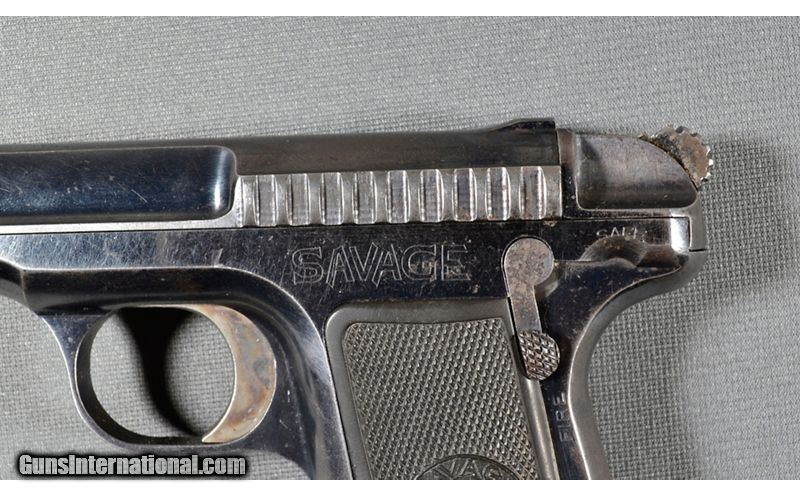 Description: The Savage Model 1907 is a semi-automatic pocket pistol produced by the Savage Arms, from 1907 until 1920. It was chambered in .32 ACP and, from 1913 until 1920, in .380 ACP. Although smaller in size, it is derived from the .45 semi-automatic pistol Savage submitted to the 1906-1911 US Army trials to choose a new semi-automatic sidearm. After several years of testing the Savage pistol was one of two finalists but ultimately lost to the Colt entry, which became famous as the Colt Model 1911. 181 of these .45 ACP pistols were returned to Savage after the testing and sold on the civilian market. .32 Auto SOLD Curio/Relic: Yes Metal Condition: "Good, Normal Wear in Expected Shooting Position Wood Condition: "Good, Original Grips, No Cracks Barrels: 3 Weight: 2LBS Item Location: Lacey, WA |
