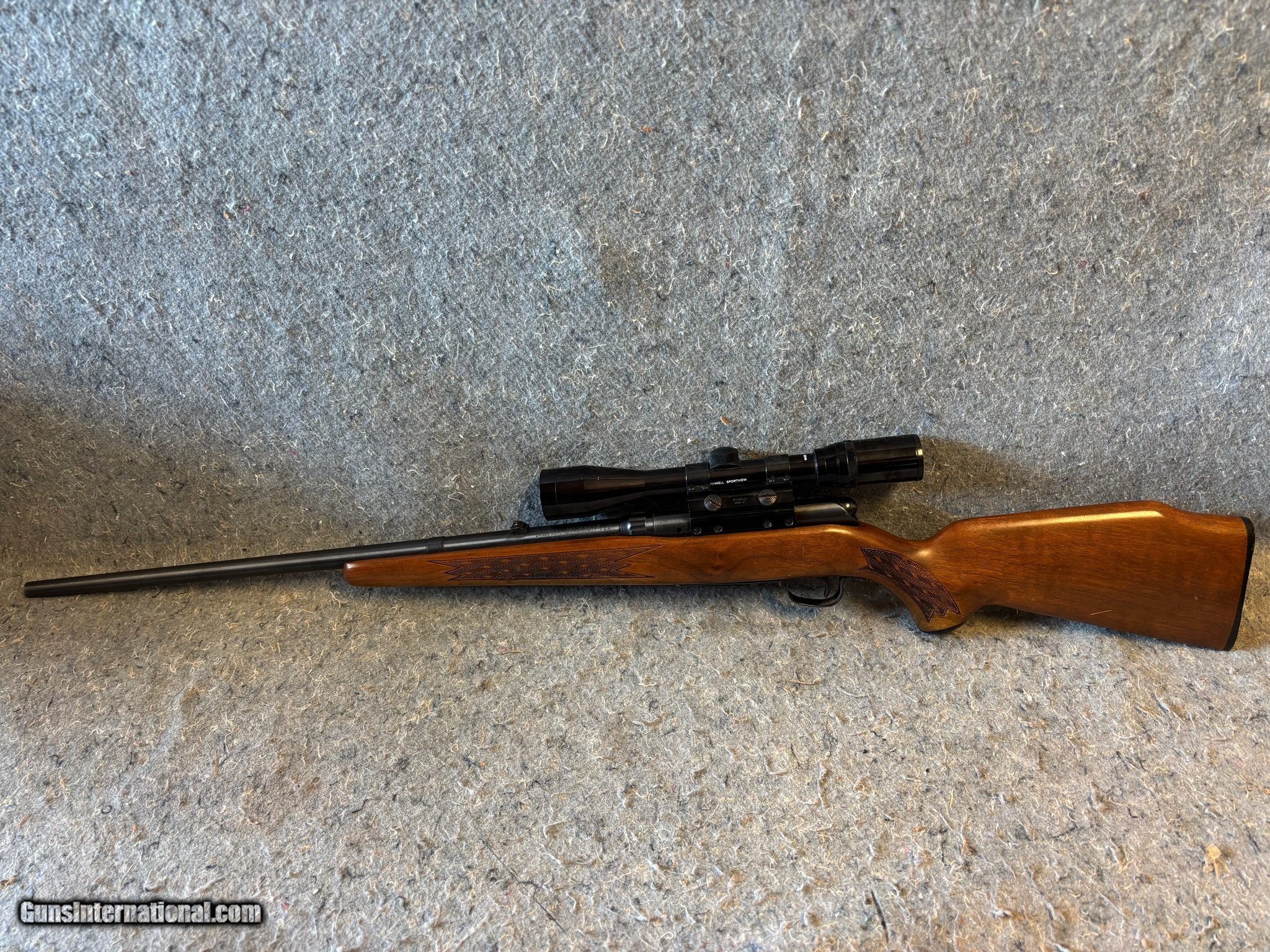 Description: Guns Listing ID: 554456 SAVAGE MODEL 340 SERIES E – .22 HORNET – 4 ROUNDS – 22\" Classic bolt-action rifle chambered in .22 Hornet with a detachable 4-round magazine. Features a hardwood stock showing some scratches and wear, paired with a vintage Weaver/Bushnell Sportview Wide Angle 4x38 scope that has minor scuffs. Overall in decent condition, fully functional, and great for collectors or varmint hunting enthusiasts. SOLD Manufacturer: SAVAGE ARMS Model: 340 Caliber Info: .22 HORNET Condition: Used - Non-Certified Barrels: 24" BARREL Action: BOLT ACTION Finish: black w/ wood stock |
