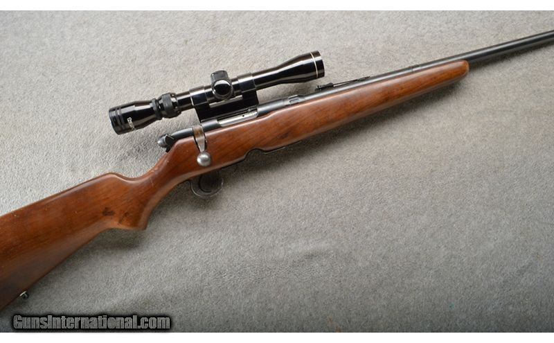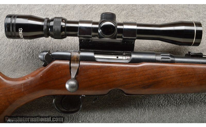Description: This is a nice field grade Savage Arms 340 BC rifle. The rifle is in very nice condition with some minor field wear. The 222 Rem round is a great little varmint round. The rifle is topped with a Tasco rifle scope held in place with a Weaver side mount. .222 Remington SOLD Chambers: Bolt action repeater. Metal Condition: Good to very good with spotting. Wood Condition: Good to very good with a few small marks. Bore Condition: Bright and shiny. Barrels: 24" blue with sights. Triggers: Single blue. Stock Dimensions: 13 5/8" LOP. Butt Pad: Plain walnut with a non-checkered pistol grip and a black butt plate. Weight: 8 Lbs. 2 Oz. Sights: Adjustable folding rear and a blade on ramp front. Also has a Tacso 3X9 Pronghorn scope. Item Location: Owatonna, MN |