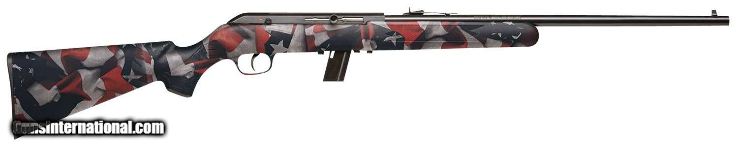 Description: Guns Listing ID: 357935 The Savage 64F Texas Flag is a semi-automatic rifle that combines practical functionality with patriotic aesthetics. This rifle, part of the Savage Arms 64 Series, is chambered in .22 Long Rifle and features a 21-inch barrel. Model 64 rimfire rifle can handle everything from casual plinking to small game hunting, and is designed to meet the needs of everyone from novices to serious enthusiasts. It comes equipped with a smooth-feeding, detachable 10-round magazine, a blued carbon steel barrel and a synthetic stock with cut checkering, that has open sights and is drilled and tapped for scope mounts. SOLD Manufacturer: SAVAGE ARMS Model: 64 F Caliber Info: .22 LR Condition: new Barrels: 21 BARREL Action: SEMI AUTOMATIC Finish: TEXAS FLAG Weight: 5 lbs. |