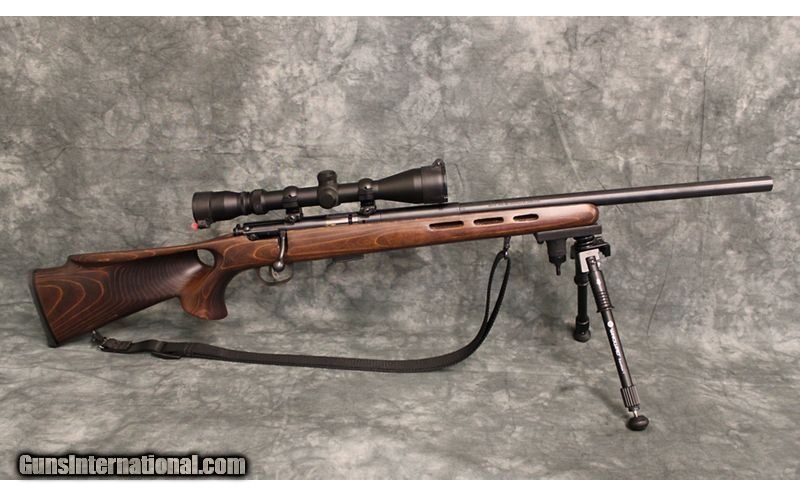 Description: Drive tacks with the bolt-action 93R17 BTV. It uses our legendary user-adjustable AccuTrigger™ technology and a 21-inch, button-rifled, heavy carbon steel barrel to deliver unbeatable accuracy. The rifle features a laminate thumbhole stock and 5-round detachable box magazine. .17 HMR SOLD Metal Condition: Very good to excellent Wood Condition: excellent Bore Condition: bright and shiney Barrels: 21" Heavy Carbon Steel barrel Triggers: user-adjustable AccuTrigger™ Stock Dimensions: 13.75" LOP Weight: 7 pounds Sights: 3-9x40 Bushnell 8 Point scope w/ front and rear covers Item Location: Avon, OH |