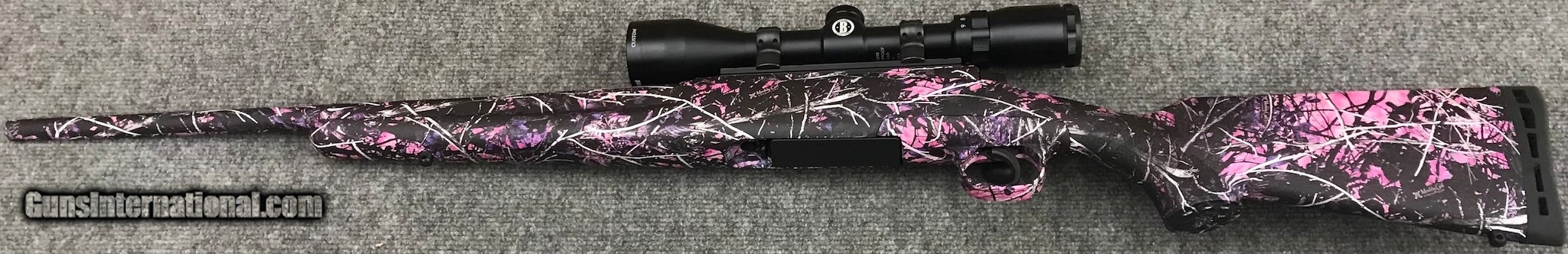 Description: Guns Listing ID: 939151 SAVAGE ARMS AXIS This firearm is in very good condition. It does show signs of very light usage with a few very light scratches on the scope mounts. Included with the purchase of this firearm is one magazine that holds five rounds and a Bushnell three by nine by forty power scope. This firearm is Muddy Girl pink camouflage patterned which looks sweet. See photographs for more detailed views. SOLD Manufacturer: SAVAGE ARMS Model: AXIS Caliber Info: .243 WIN Condition: Used - Non-Certified Barrels: 21 BARREL Finish: MUDDY GIRL |