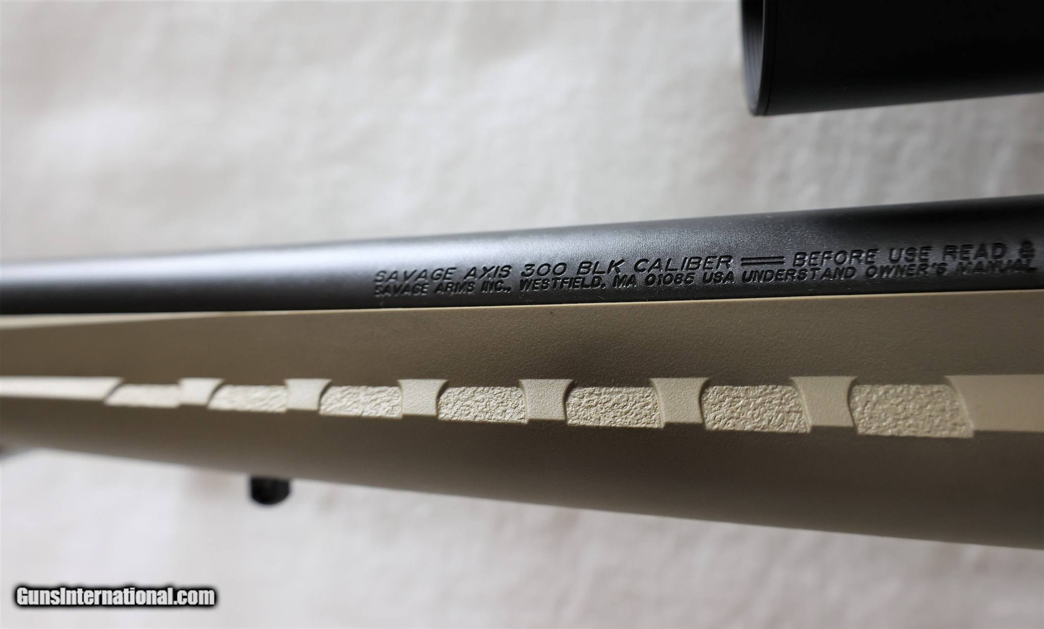 Description: Guns Listing ID: 879915 This rifle is very clean and shows minimal signs of wear. If it‚‚s been shot, it hasn‚‚t been much! There are minor scuffs on the stock, otherwise it‚‚s in \"like new\" condition. This FDE Savage Axis comes fitted with a Redfield Rebel 4-12x40mm scope. This is a great value on a like new gun at a pre-owned price. Compare this package to Academy new at $579.99 Head out for the hunt with the Savage Axis II .300 Blackout Bolt Action Rifle. The AccuTrigger lets you adjust the length of pull for comfort, while the 1-piece picatinny rail is drilled and tapped to accept a scope. Head outdoors with the Redfield Rebel 4 - 12 x 40 Scope. The fully multi-coated low-dispersion lenses deliver a bright view, and the nitrogen purged and sealed 1-piece machined aluminum tube will remain resilient in the elemen SOLD Manufacturer: SAVAGE ARMS Model: AXIS Caliber Info: .300 AAC BLACKOUT Condition: Used - Non-Certified Barrels: 16.12 BARREL Finish: FDE |