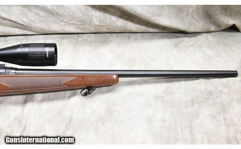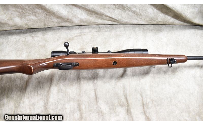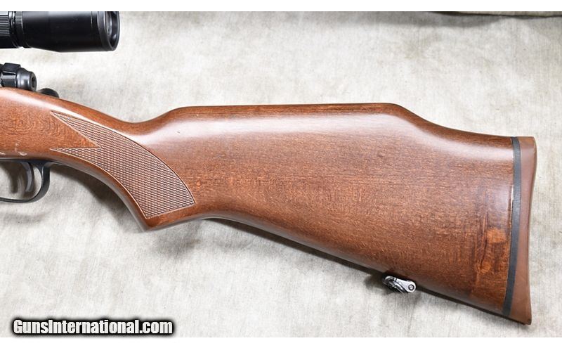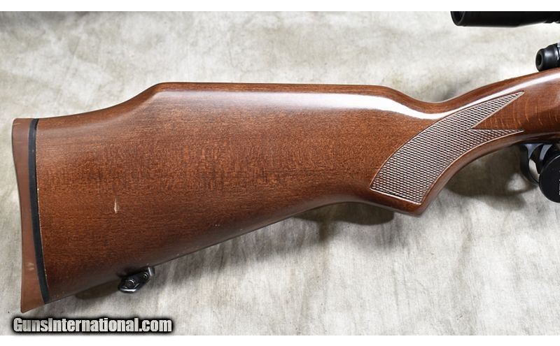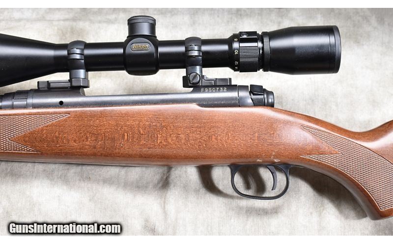 Description: Nice every day rifle for varmint and pest control featuring a hardwood Monte Carlo style stock and factory grooved trigger. It has an internal box magazine. .22-250 Remington SOLD Chambers: 5 Metal Condition: Very good to excellent. Wood Condition: Very good. Bore Condition: Shiny and bright with good rifling. Barrels: 22-inch Triggers: Factory trigger. Stock Dimensions: 13-5/8 inch LOP. Butt Pad: Rubber pad. Weight: 9 lb Sights: Drilled and tapped for scope. Outfitted with a Nikon Buckmasters 4.5 x 14 scope. Item Location: Rogers |