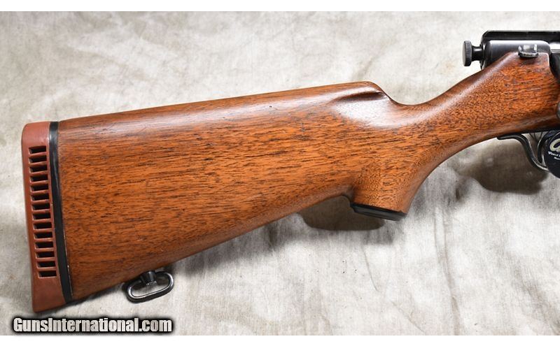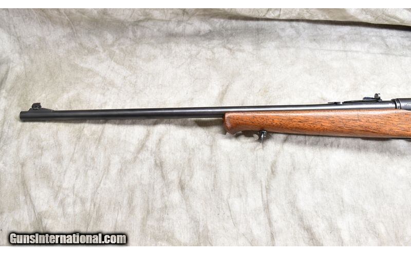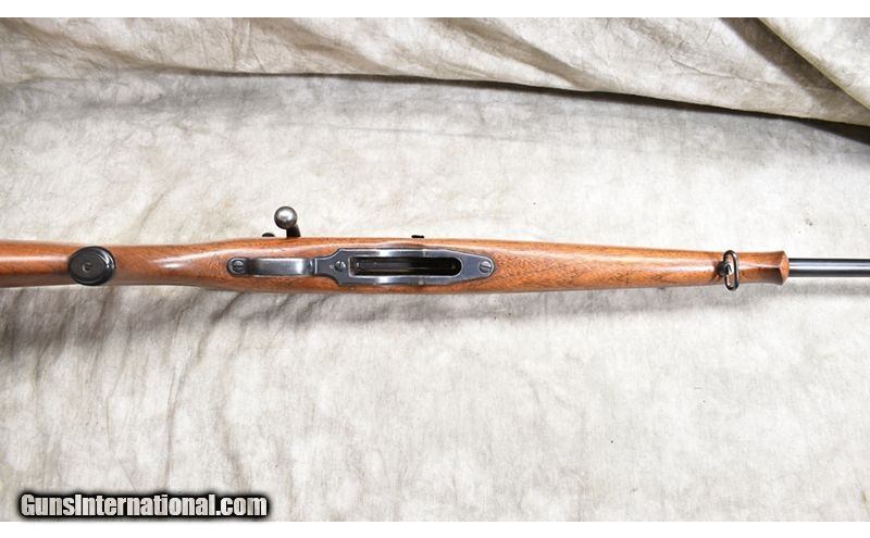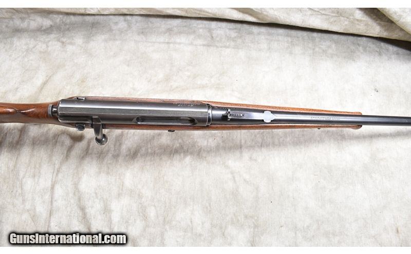 Description: Nice little everyday rifle with detachable magazine, walnut stock, thin Schnabel forend and an overall length of 44 inches. .30-06 Springfield SOLD Chambers: 5 Metal Condition: Very good. Good blue overall with some wear showing at the carry point. Wood Condition: Very good. Nice walnut with Schnabel and grip cap. Bore Condition: Shiny and bright. Barrels: 24-inch Triggers: Factory trigger. Stock Dimensions: 14-1/4 inch LOP Fore End: Thin with Schnabel. Butt Pad: Ventilated rubber pad. Weight: 7 lb - 4 oz Sights: Bead and semi-buckhorn "iron" sights. Item Location: Rogers |