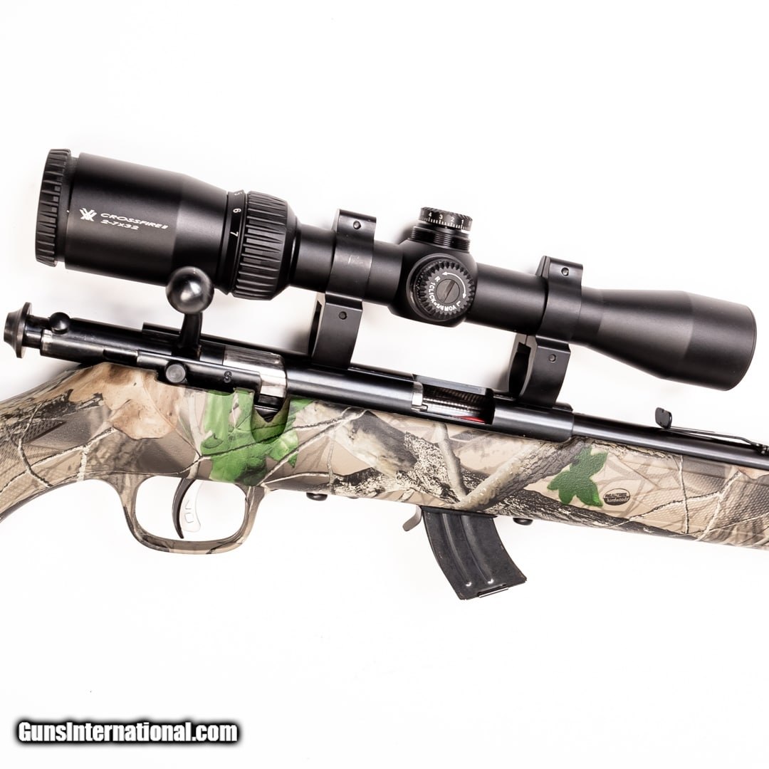 Description: Guns Listing ID: 508356 The Savage Arms Mark II .22 is a bolt-action rimfire rifle chambered in .22LR. It makes a great plinker, target shooter and small game hunter. This Mark II has been equipped with a UTG bipod, Vortex Crossfire II 2-7X32 scope, and a camo sling. 1-10 round magazine and 2-5 round magazines are included. SOLD Manufacturer: SAVAGE ARMS Model: MARK II Caliber Info: .22 LR Condition: Used - Certified Barrels: 20.5 BARREL Finish: CAMO |