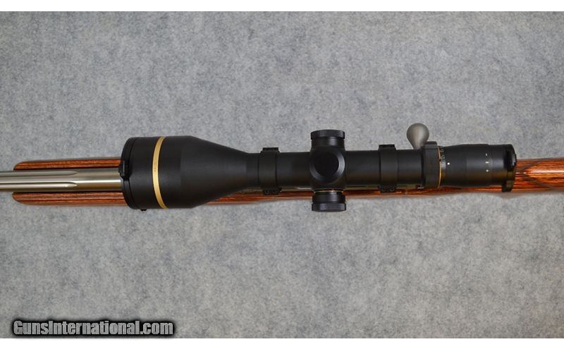 Description: Beautiful laminated wood stock, brake muzzle and fluted heavy stainless barrel and action. Detachable 4- RD magazine. Leupold VX-7L ( 3.5-14 x 56mm) scope. Hard case. .223 Remington SOLD Metal Condition: Excellent Bore Condition: Excellent Barrels: 26" BBL Triggers: Accu Trigger Butt Pad: Black Rubber Weight: 12 Lbs. 4 Oz. Sights: Leupold Item Location: Louisville, KY |