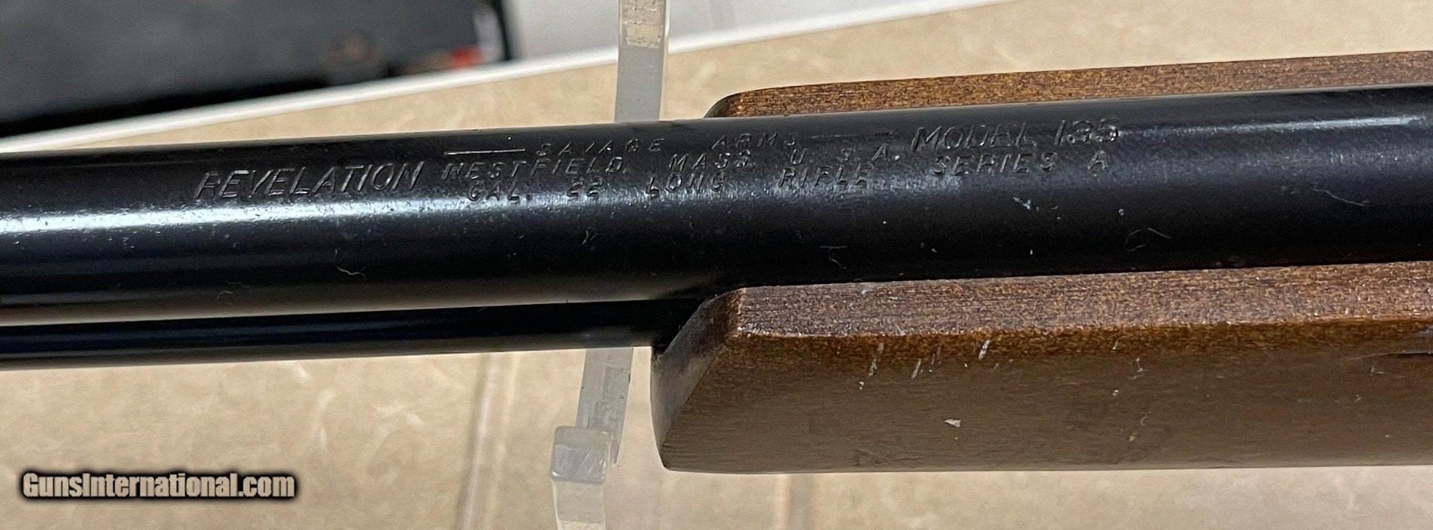 Description: Guns Listing ID: 580742 Savage Arms Revelation Model 135 Series A - .22LR - 20\" Barrel - Single Shot Rifle See Pictures for details. Included: Rifle ONLY SOLD Manufacturer: SAVAGE ARMS Model: Model 135 Caliber Info: .22LR Condition: Used - Non-Certified Barrels: 20 BARREL Finish: WOOD AND BLACK |