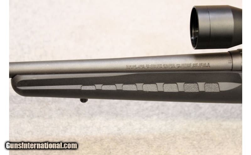Description: This Savage Axis chambered in .22-250 Rem features, parkerized finish, tang safety, Bushnell 3-9x40mm scope, rubber recoil pad, and black synthetic stock. .22-250 Remington SOLD Metal Condition: Excellent Bore Condition: Bright Barrels: 22 Weight: 7.2 lbs. Item Location: Hoffman Estates, IL |