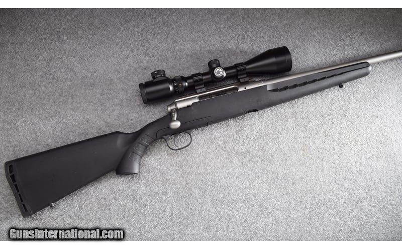 Description: This Savage Axis in .22-250 Remington is in very good overall condition. It is equipped with a Barska 3-12x scope with illuminated reticle. There are a few scuffs on the stainless barrel near the muzzle. The synthetic stock shows a few handling marks as well. This is a NON ACCU TRIGGER model Savage Axis. No box. .22-250 Remington SOLD Metal Condition: Very Good Bore Condition: Excellent Barrels: 22" Stainless Triggers: Factory Non Accu Trigger Stock Dimensions: 13 1/2" LOP Fore End: Black Synthetic Semi Pistol Grip Stock - Black Synthetic Free Float Forend Butt Pad: Black Rubber Butt Pad Weight: 7 1/2 lbs Sights: Barska 3-12x Scope with Illuminated Reticle Item Location: Wheeling |