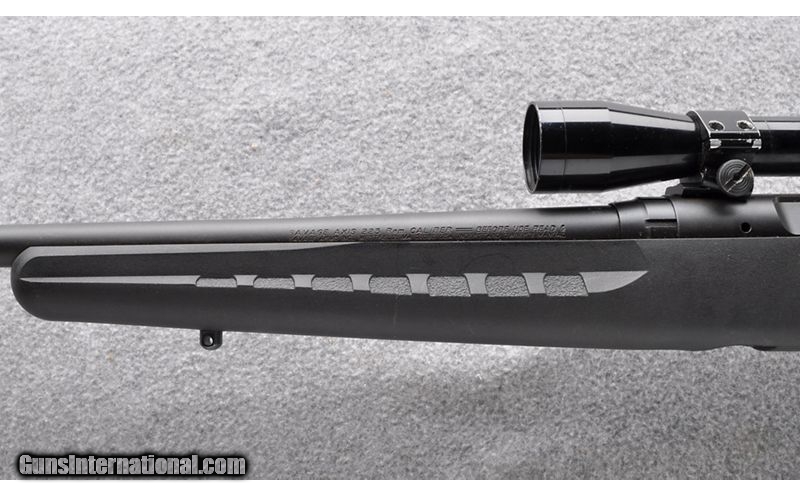 Description: Affordability, performance and precision. The Savage Axis provides all these. .223 Remington SOLD Chambers: .223 Remington in a four round detachable box magazine Metal Condition: Very good showing the slightest amount of blue wear at the muzzle Bore Condition: Sharp & bright Barrels: 22" medium contour 1:9 twist Stock Dimensions: 13 1/2" LOP Fore End: Synthetic textured with sling stud Butt Pad: Savage vented rubber Weight: 7 Lbs. 4 Oz. Sights: "No sights, fitted with a Bushnell Sharpshooter 3-9 scope Item Location: Grand Junction, CO |