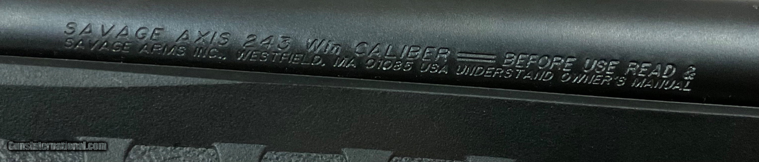 Description: Savage Axis .243 Win Bolt Action Rifle In very good condition. Minor wear on finish. See all photos for details. Buyer is responsible for a 35 dollar shipping charge. SOLD Rifle Caliber: .243 Winchester Manufacturer: Savage Model: Axis Serial Number: K666435 Condition: Very good |