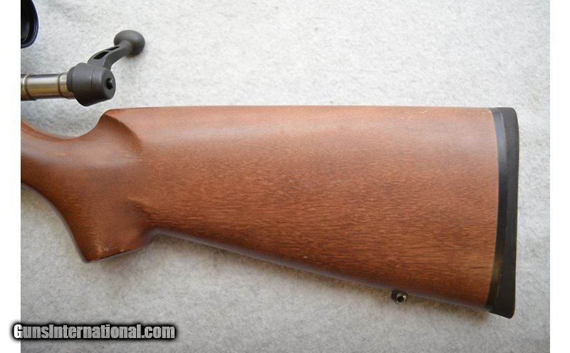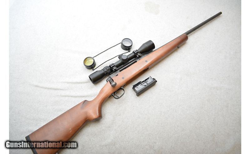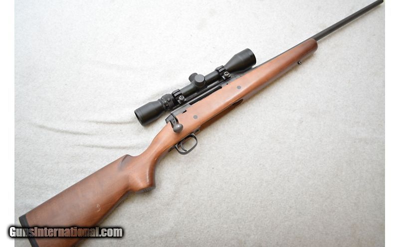 Description: Good shape overall but nothing special. The metal has some handling marks but nothing out of the ordinary for a used rifle. There is a tiny speck of rust just above the "/" on the barrel's caliber marking. The stock has a few scratches and other handling marks. The worst damage to the stock is a scratch behind the rear dot on the left of the stock and a scuff patch about 2/3's the up the stock from the recoil pad on the right side. Comes with a single magazine and lens covers. .30-06 Springfield SOLD Chambers: Bolt action fed from a detachable magazine. Metal Condition: Good. Wood Condition: Good. Bore Condition: Excellent. Barrels: 22¼" Matte blued. Triggers: Matte blued with smooth face. Stock Dimensions: Wood with 14" LOP. Fore End: Wood. Butt Pad: Black rubber pad. Weight: 8lbs Sights: No iron sights. Comes equipped with a 3-9x40mm scope. Chokes: N/A Item Location: Green Bay |