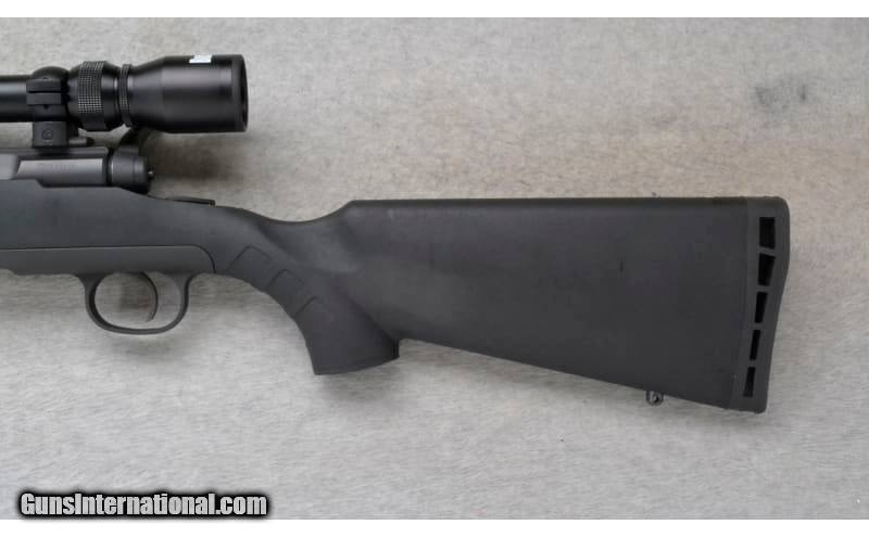 Description: This Savage Model Axis is a right hand bolt action rifle in .308 Win. Cal. It has a 22 inch barrel. It is outfitted with a Bushnell 3-9x40 Scope. The butt stock is a textured grip black polymer pistol grip. The forearm is a textured grip black polymer. .308 Winchester SOLD Chambers: Detachable Magazine. Metal Condition: Excellent. Bore Condition: Excellent. Barrels: 22 inch. Stock Dimensions: LOP 13.5 inches. Fore End: Textured grip black polymer with finger grooves. Butt Pad: Black rubber recoil pad. Weight: 7 lb. 2 oz. Sights: Bushnell 3-9x40 Scope. Item Location: Richfield, WI |