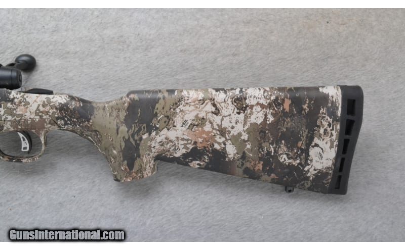 Description: This Savage Model Axis is a right hand bolt action rifle in 6.5 Creedmoor Cal. It has a 20 inch threaded end barrel. Scope mount bases attached. No iron sights. The butt stock is a textured grip polymer pistol grip in Veil camo. The forearm is a textured grip polymer in Veil camo. 6.5 Creedmoor SOLD Chambers: Detachable Magazine. Metal Condition: Excellent. Bore Condition: Excellent. Barrels: 20 inch threaded end barrel. Triggers: Adjustable AccuTrigger. Stock Dimensions: LOP 13 3/8 inches. Fore End: Textured grip polymer in Veil camo. Butt Pad: Black rubber recoil pad. Weight: 7 lb. 2 oz. Sights: Scope mount bases attached. No iron sights. Item Location: Richfield, WI |