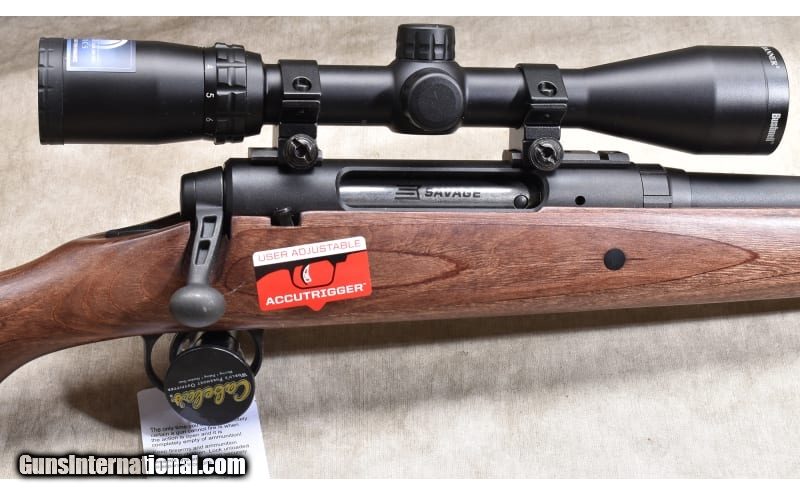 Description: Very nice everyday rifle featuring hardwood stock, detachable magazine, user adjustable Accutrigger, and that famous Savage barrel. Part of a Special Buy and factory fresh. .25-06 Remington SOLD Chambers: 5 ROUNDS Metal Condition: ASNIB. Wood Condition: ASNIB. Bore Condition: ASNIB. Barrels: 22 INCHES Triggers: "Factory Accutrigger, user adjustable. Stock Dimensions: LOP: 13-3/4 inches Butt Pad: Rubber pad. Weight: 8 lb - 4 oz Sights: Set up for scope and outfitted with a Bushnell 3-9x scope. Item Location: Rogers |
