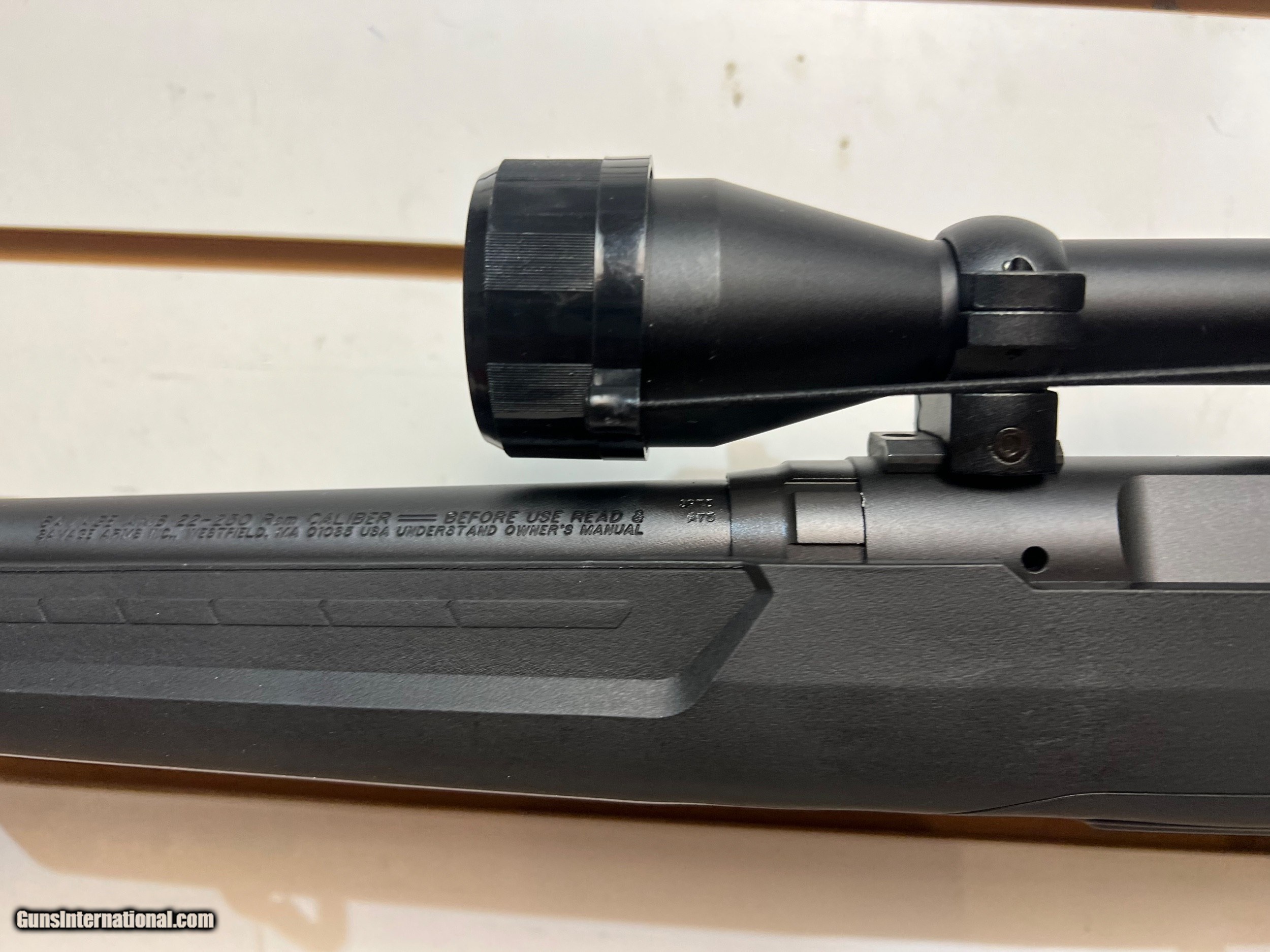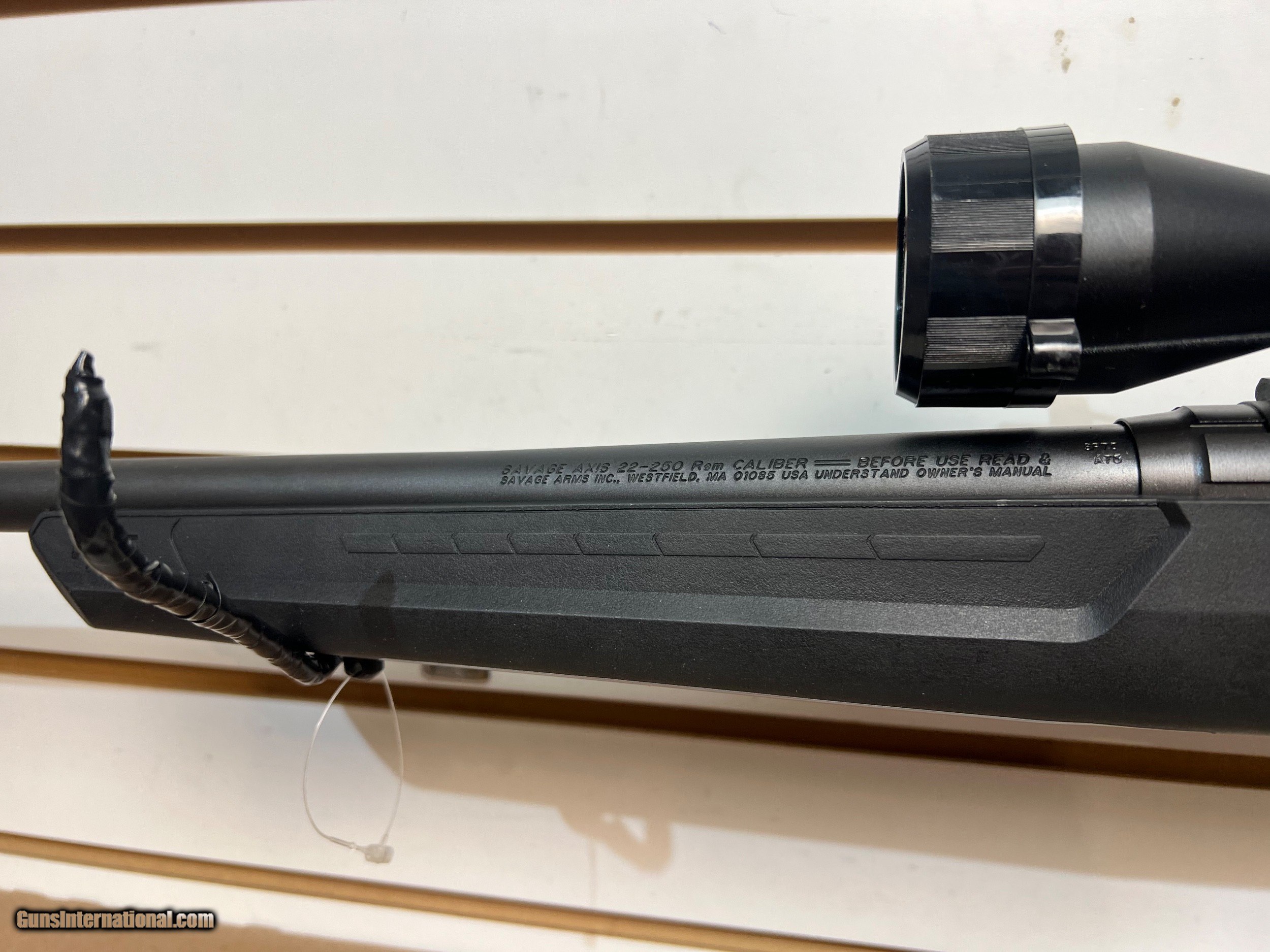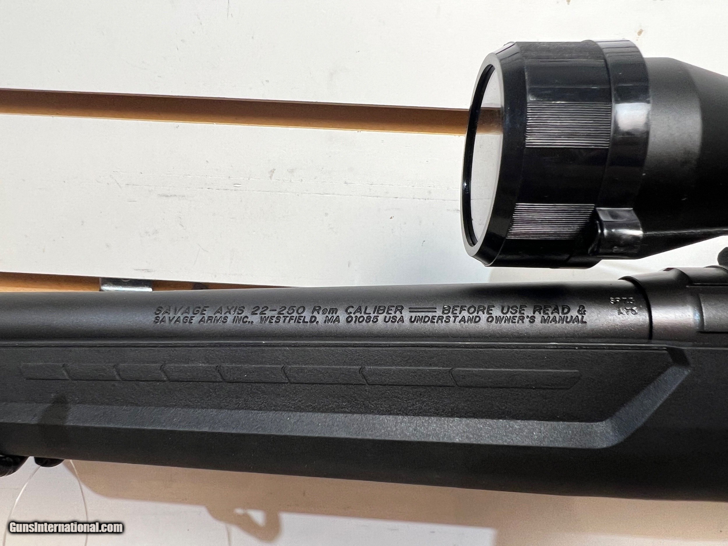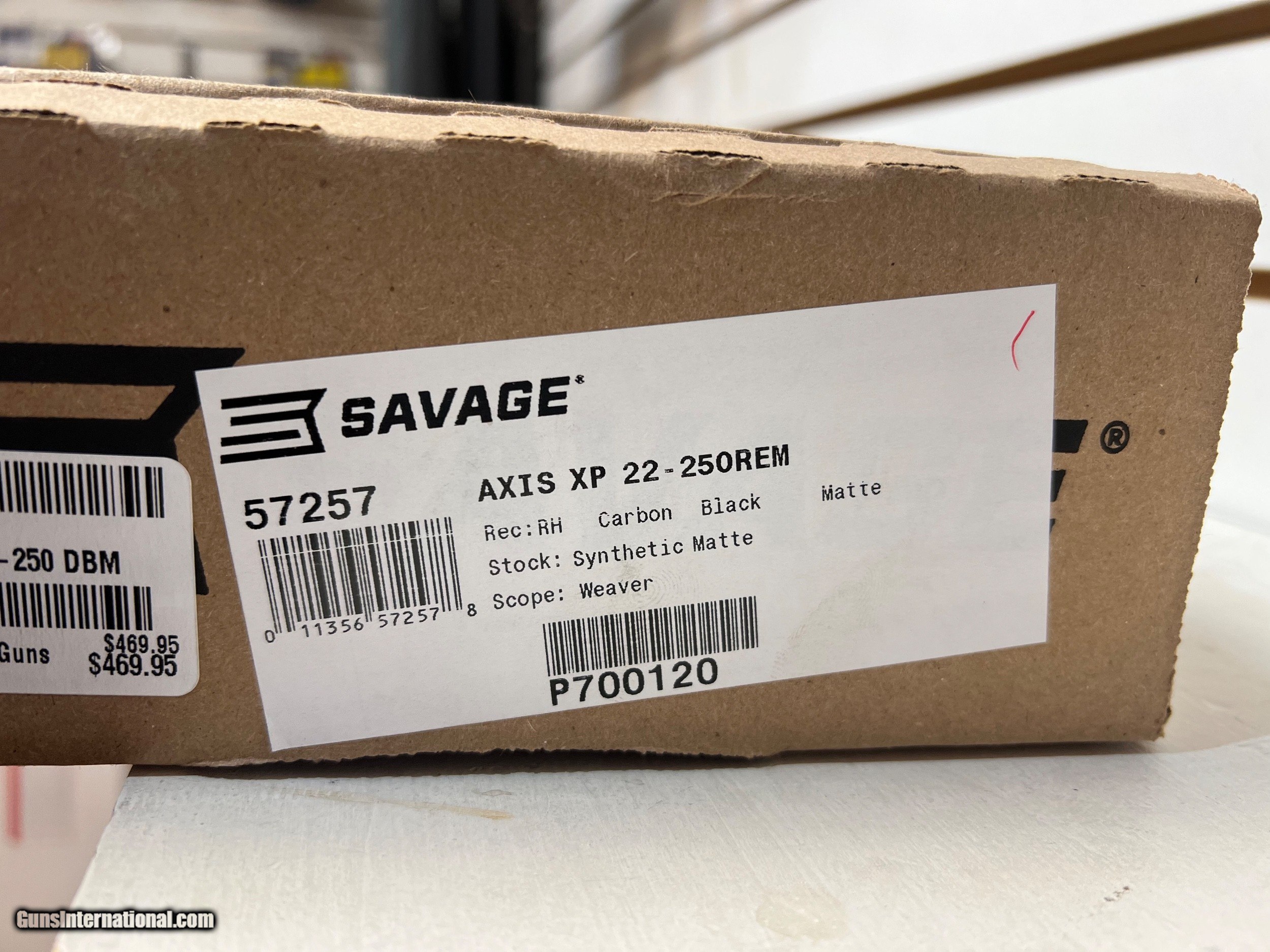 Description: Savage Axis XP 22-250Rem Bolt Action Product: 57257 It's the fastest way to go from the store to the stand. The AXIS XP comes with a factory-mounted and boresighted Weaver 3-9x40mm scope that extracts maximum accuracy from the rifle's 22-inch button-rifled barrel. It features a tough synthetic stock and detachable box magazine. FEATURES