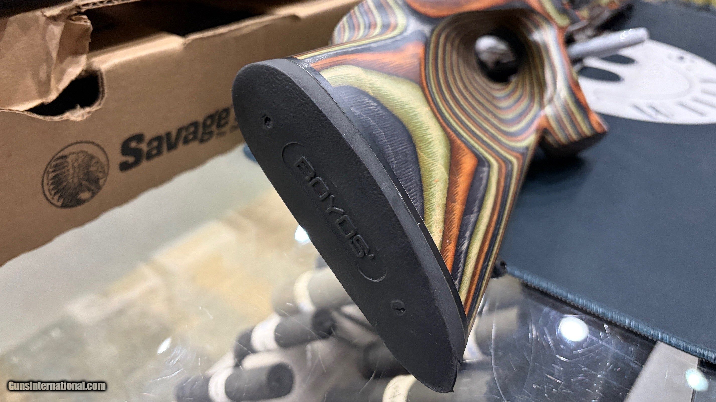 Description: Savage B.MAG .17 WSM Bolt-Action Rifle – Boyd’s Thumbhole Stock – Original Box & Stock – 2 Magazines Overview Offered is a Savage B.MAG bolt-action rifle chambered in .17 WSM, featuring an upgraded Boyd’s laminated thumbhole stock currently installed, along with the original Savage factory synthetic stock and original factory box included. This is a well-rounded package for the shooter who wants improved ergonomics and stability over the factory configuration, while retaining all original components for future flexibility or collector completeness. Configuration & Features
