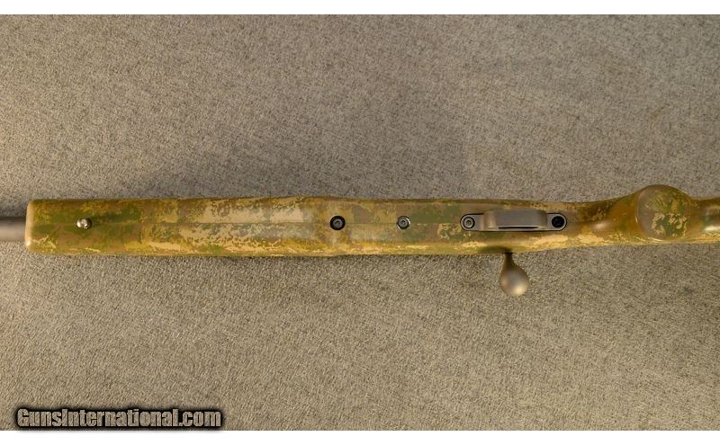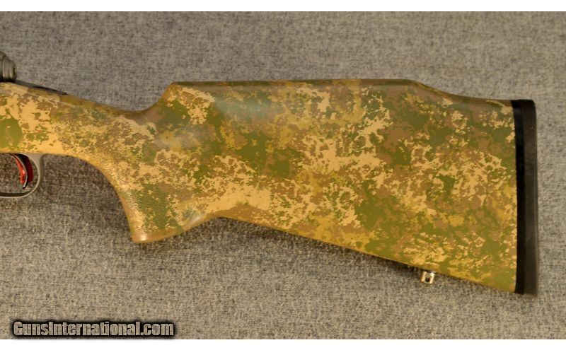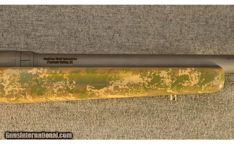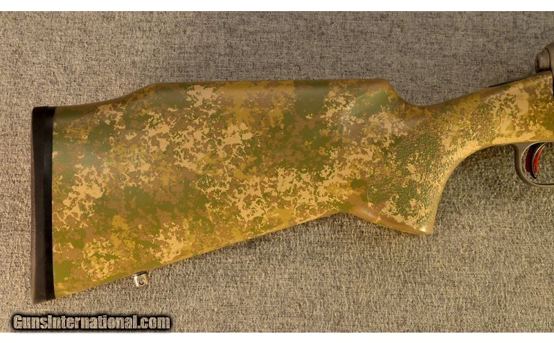 Description: This is a pre-owned Savage bolt-action in .22-250 Remington in a McMillan stock, customized by Stalking Wolf Gunworks in Prescott Valley, AZ .22-250 Remington SOLD Metal Condition: Quite good overall with a number of small scratches and rub marks plus marks from scope bases Wood Condition: Very good with light handling marks Bore Condition: Clean with good lands Barrels: 26" heavy Triggers: Very light AccuTrigger Stock Dimensions: 13 1/2" LOP Fore End: McMillan stock Butt Pad: 1/2" Pachmayr Decelerator Weight: 9 lbs. 11 oz. Sights: Drilled and tapped for scope mounts Item Location: Glendale, AZ |