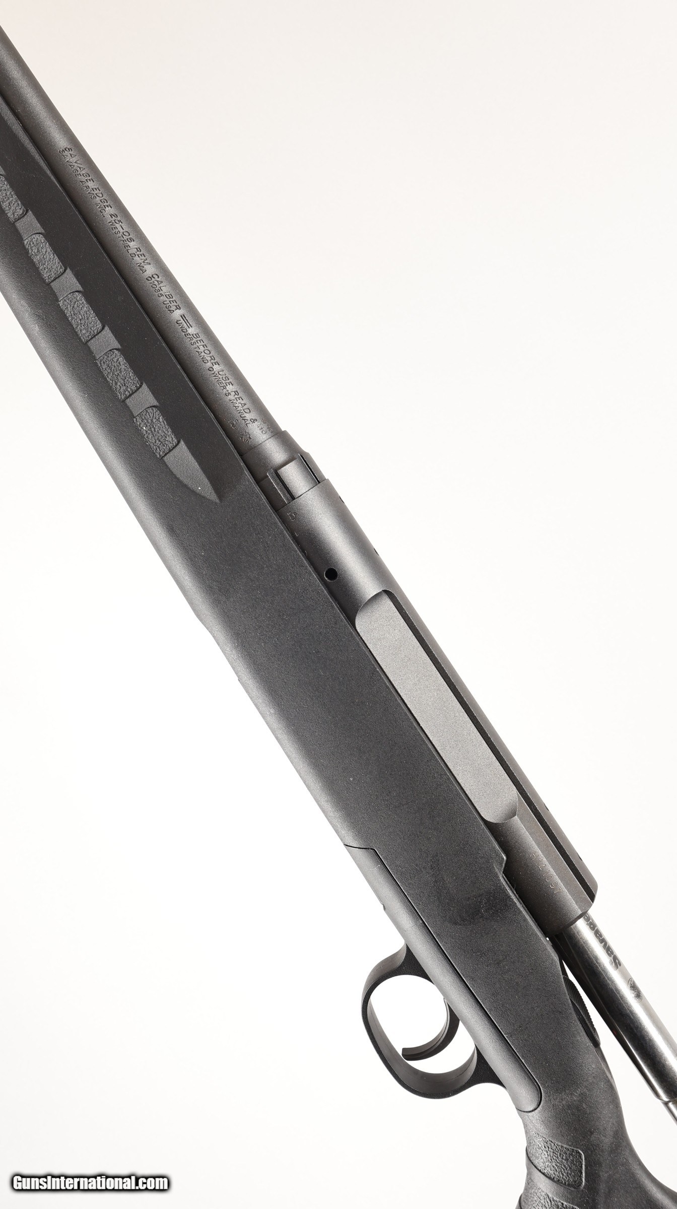 Description: Overall Length 43 1/4" | Like new condition The Savage Edge is a bolt action rifle built in the United States and chambered in .25-06. It is made for dependable accuracy with a straightforward design. The synthetic stock keeps it durable and easy to handle. This rifle is in like new condition and has a factory threaded barrel with a thread protector for use with a muzzle brake. It comes with one magazine and has a clean overall appearance. Made in 2010, this example has a right-hand cast and a 22 3/4" barrel.