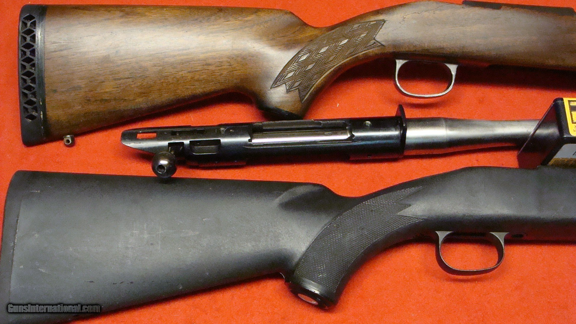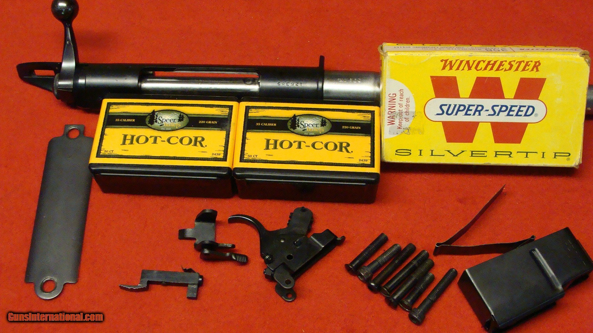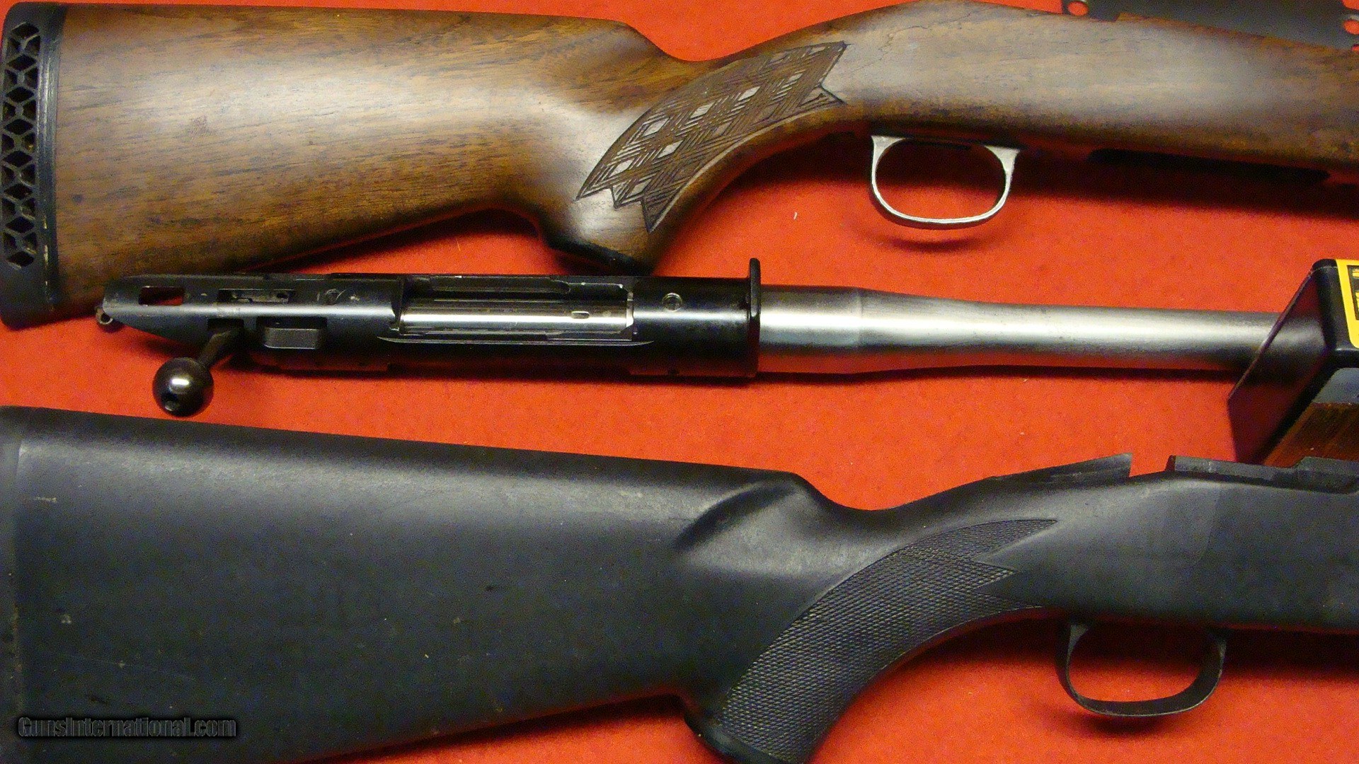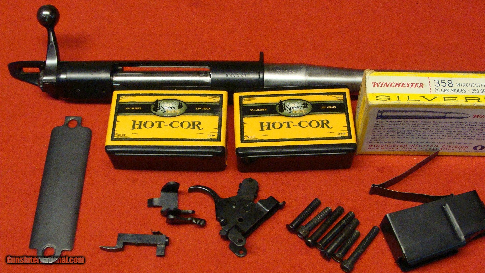 Description: Savage Left Hand Model 110 in Winchester 358. The 22" barrel was purchased from Bownells ten years ago and requires bluing. The two stocks require inletting. Two boxes of 350 caliber soft point 220 grain bullets added and an original collectors Super X Winchester 358 box in good condition containing 23 brass cartridges. Will be a wonderful and unusual project for a lefty. Thanks for looking SOLD |