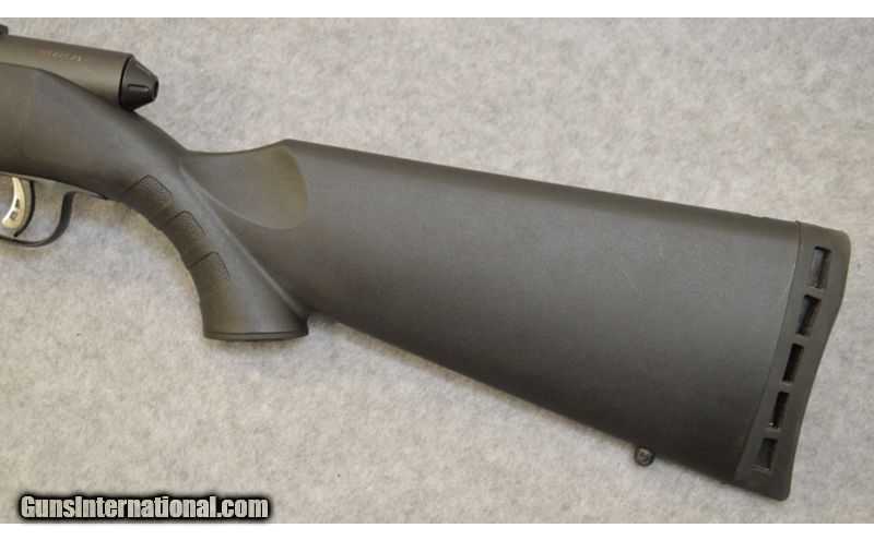Description: This is a bolt-action Savage M-25 chambered in .204 Ruger. It has a 20" blued barrel with split dovetail mounts. The stock and fore end are a matching black synthetic in very good condition, with a few scratches. The metal is also in very good condition, with some scratches in the bluing towards the front of the barrel. The bore is bright and shiny. This rifle comes with one magazine. .204 Ruger SOLD Chambers: Bolt-action. Metal Condition: Very good, with some scratches in the bluing towards the front of the barrel. Bore Condition: Bright and shiny. Barrels: 20" Blued barrel. Triggers: Single curved trigger. Stock Dimensions: 14.5" LOP. Fore End: Black synthetic. Butt Pad: Black rubber butt pad. Weight: 6 lbs. 13 oz. Sights: Split dovetails. Item Location: Huntsville, AL |