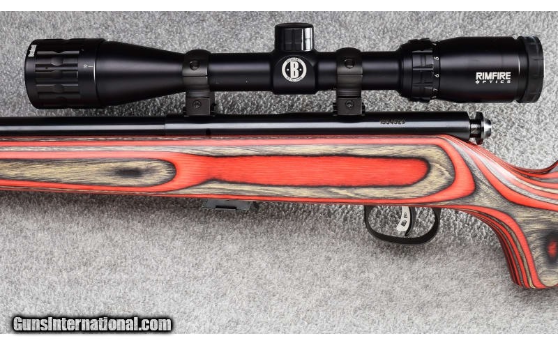 Description: This Savage MKII in .17 Mach 2 is in excellent condition. It features a red laminate Boyd's stock. A Bushnell Rimfire 3.5-10x scope is attached to the receiver. Standard Savage Accu Trigger. One (1) factory magazine. NO box. A very nice rimfire target style rifle! None SOLD Metal Condition: Excellent Wood Condition: Excellent Bore Condition: Excellent Barrels: 20" Heavy Triggers: Accu Trigger Stock Dimensions: 14" LOP Fore End: Red Laminate Semi Pistol Grip Stock - Red Laminate Free Float Forend Butt Pad: Black Rubber Butt Pad Weight: 8.5 lbs Sights: Bushnell Rimfire 3.5-10x Scope Item Location: Wheeling |