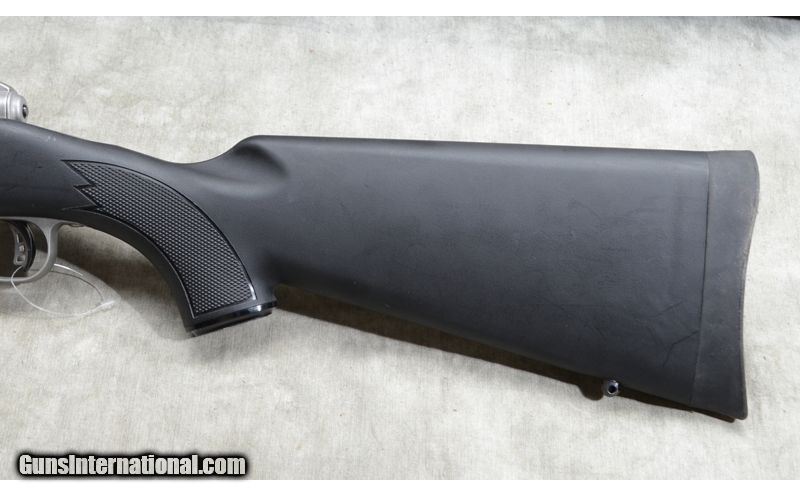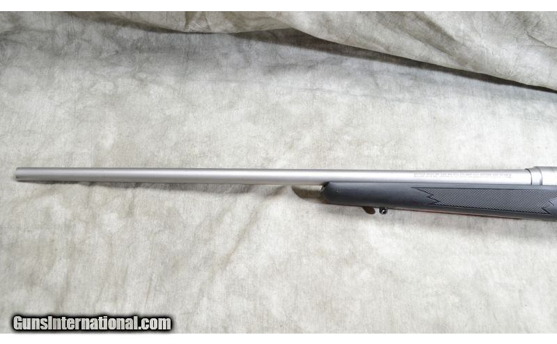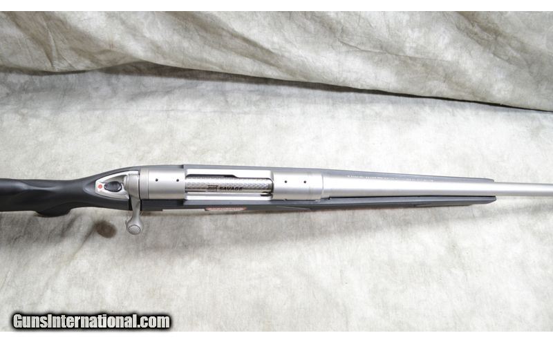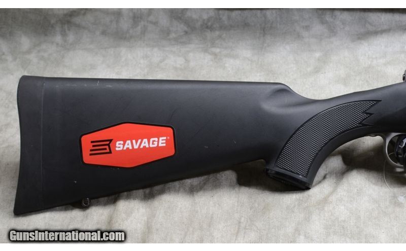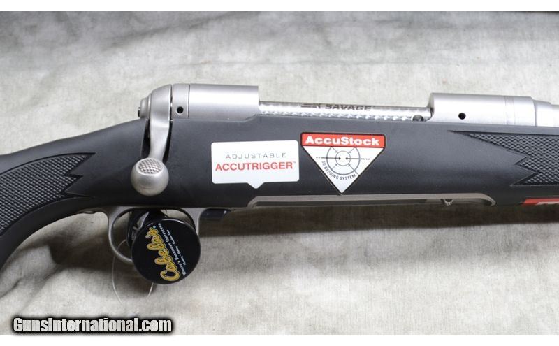 Description: This grey synthetic Savage features Accutrigger and Accustock, knurled bolt knob, soft gel pad and satin steel metal parts. .300 Winchester Magnum SOLD Chambers: 4-round detachable magazine. Metal Condition: LNIB. Wood Condition: LNIB. Bore Condition: LNIB. Barrels: 24 inch satin stainless steel. Triggers: Factory adjustable Accutrigger. Stock Dimensions: 13 - 3/4 inch LOP. Butt Pad: Thick and soft rubber pad. Weight: 7 lb. - 1 oz. Sights: Drilled and tapped for scope. Item Location: Rogers |