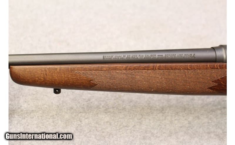 Description: This Savage Model 10 chambered in .22-250 Rem features, parkerized finish, two piece weaver rail, detachable magazine, tang safety, sling mounts, rubber recoil pad, and wood checkered stock. .22-250 Remington SOLD Metal Condition: Excellent Wood Condition: Excellent Bore Condition: Bright Barrels: 22 Weight: 6.9 lbs. Item Location: Hoffman Estates, IL |