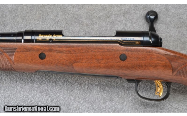 Description: As new throughout complete with box. SOLD Manufacturer: S/N 6A0XXX Caliber Info: .300 Savage Metal Condition: As New Wood Condition: As New Bore Condition: As New Barrels: 22" with Gold Accents Triggers: Svage Accu-Trigger - Gold Plated Stock: Checkered Walnut Pistol Grip with Black Cap Stock Dimensions: 13 3/8" LOP Fore End: Checkered Walnut with Black Cap Butt Pad: Black Rubber Weight: 7 3/4 LB Sights: None Item Location: Wheeling, WV |