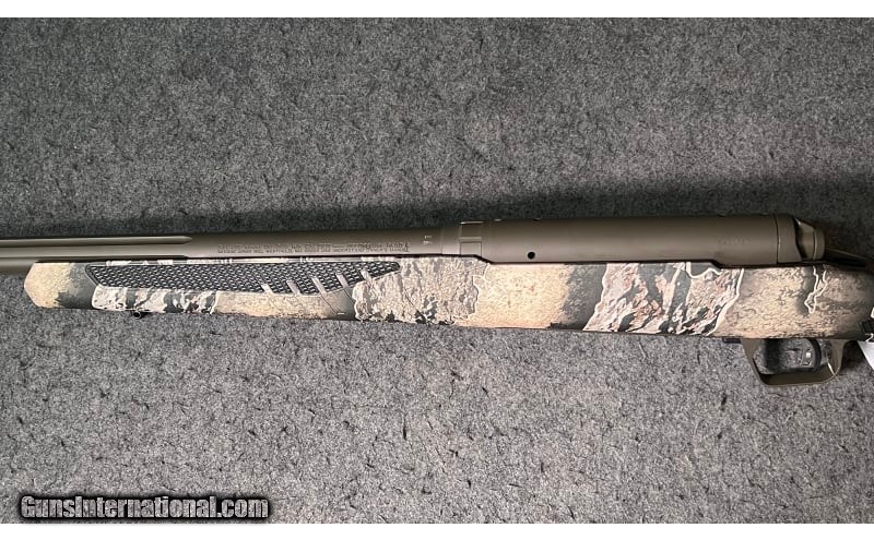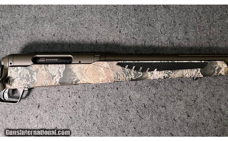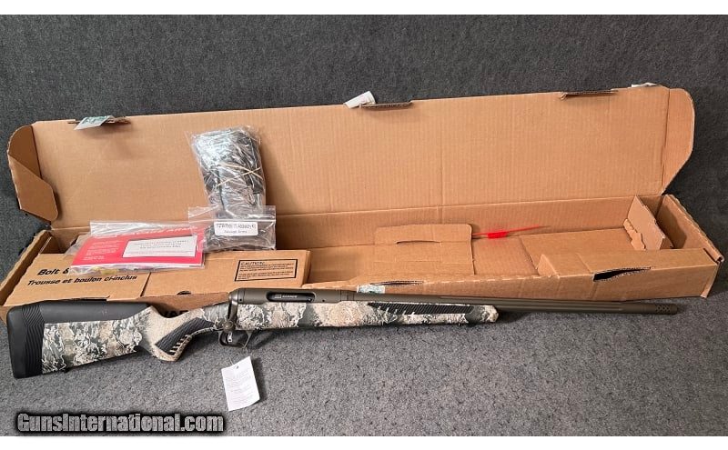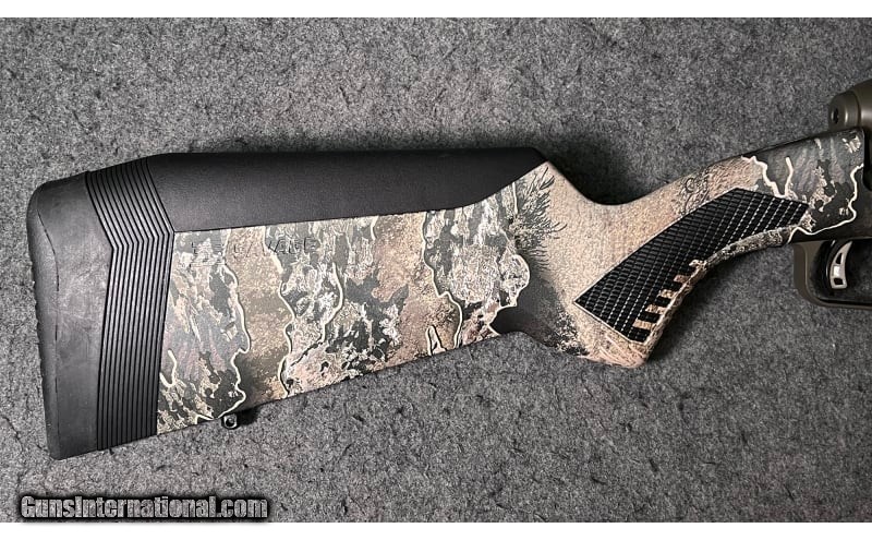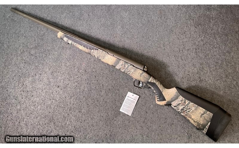 Description: This factory new in the box bolt action rifle is a Savage Arms Model 110 Timberline chambered in .308 Winchester. It has a detachable box magazine, a 22" fluted barrel, with Savage's omni-port muzzle brake, overmolded grip surfaces on the stock, three position tang safety, and Savage's user-adjustable AccuTrigger down to 1.5 pounds. Savage's 110 push-feed action incorporates a floating bolt head which allows for complete engagement of both lugs in the receiver. The stock has two premium features. First, the AccuStock has a full-length metal rail that secures the action in three dimensions along its entire length. There is a healthy gap between the barrel channel and the stock, but this is not "sloppy fit." It's a clever built-in design feature. Second, the proprietary AccuFit feature allows shooters to get a personalized fit via the five risers for adjusting the comb height and the four length-of-pull inserts for altering the LOP. And the recoil pad is nice and squishy and really soaks up recoil. The receiver is drilled and tapped for scope bases and accepts 8-40 screws. It comes with its original Factory box, Owner's Manual, Accessory Kit, Decal, ear plugs, cable lock. The Accessory Kit goes with the proprietary AccuFit stock feature which allows shooters to get a personalized fit via the five risers for adjusting the comb height and the four length-of-pull inserts for altering the LOP. Savage has a long history of offering value-packed guns, and the time-honored Model 110 bolt action is a prime component of that legacy. .308 Winchester SOLD Chambers: At the heart of the Timberline is Savage's 110 push-feed action The floating bolt head allows for complete engagement of both lugs in the receiver. Metal Condition: Factory new in the box Wood Condition: Factory new in the box Bore Condition: Factory new in the box Barrels: "22"" fluted barrel, with Savage's omni-port muzzle brake Triggers: Accutrigger Stock Dimensions: Overall length 43¾ Fore End: OD Green Cerakote barrel and receiver Butt Pad: The proprietary AccuFit stock feature which allows shooters to get a personalized fit via the five risers for adjusting the comb height and the four length-of-pull inserts for altering the LOP. Weight: 8 Lb 4 Oz Sights: Receiver is drilled and tapped ready for optics mount Item Location: Wichita, KS |