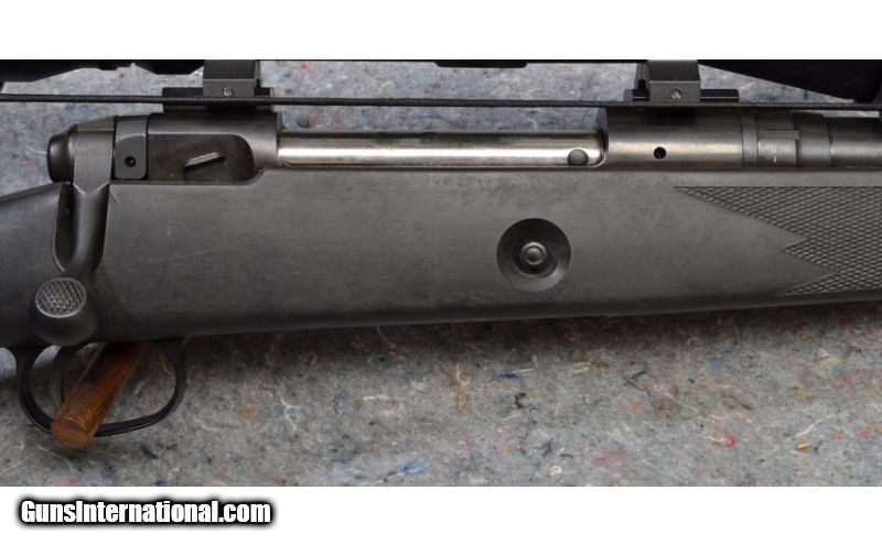 Description: SOLD Caliber Info: .30-06 SPRG. Chambers: 4 round detachable magazine Metal Condition: Very good with little signs of handling Wood Condition: Good with some very light scuffs and scratches. Bore Condition: Very good with sharp rifling Barrels: 22' Barrel Triggers: Bolt Action Stock: One piece black polymer stock and fore end. Butt Pad: 5/8' Black rubber butt pad Weight: 8 lbs 2 oz. Sights: Simmons 3-9 X 40 Scope Extras: One 4 round magazine included. Item Location: Wichita, KS |