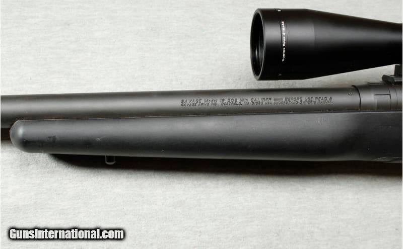 Description: Savage Model 12 bolt action rifle with a 26 inch barrel and chambered in .308 WIN. Black synthetic stock and comes with a Vortex scope mounted. Finish is good with rifle showing normal wear. .308 Winchester SOLD Metal Condition: good Bore Condition: bright Barrels: 26" barrel Stock Dimensions: 14 Fore End: synthetic Butt Pad: rubber Weight: 9 lb - 14 oz Sights: Vortex Viper 4-16x44 scope Item Location: La Vista, NE |