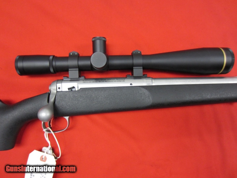 Description: Savage Model 12 6mm BR w/ Leupold Competition 40x45mm (USED)-- HS precision target stock with full length aluminum bedding block (gun has also been glass bedded). Ultra heavy triple pillar bedded target-style single-shot short action. 26 inch fully floated bull barrel with target crown. Stainless steel action and barrel. No sights. Target AccuTrigger adjustable from 6 oz. to 2.5 lbs. Oversized right hand bolt handle with left ejection port. This rifle is topped wiith a Leupold Competition 40x50mm scope. MINT CONDITION SOLD |