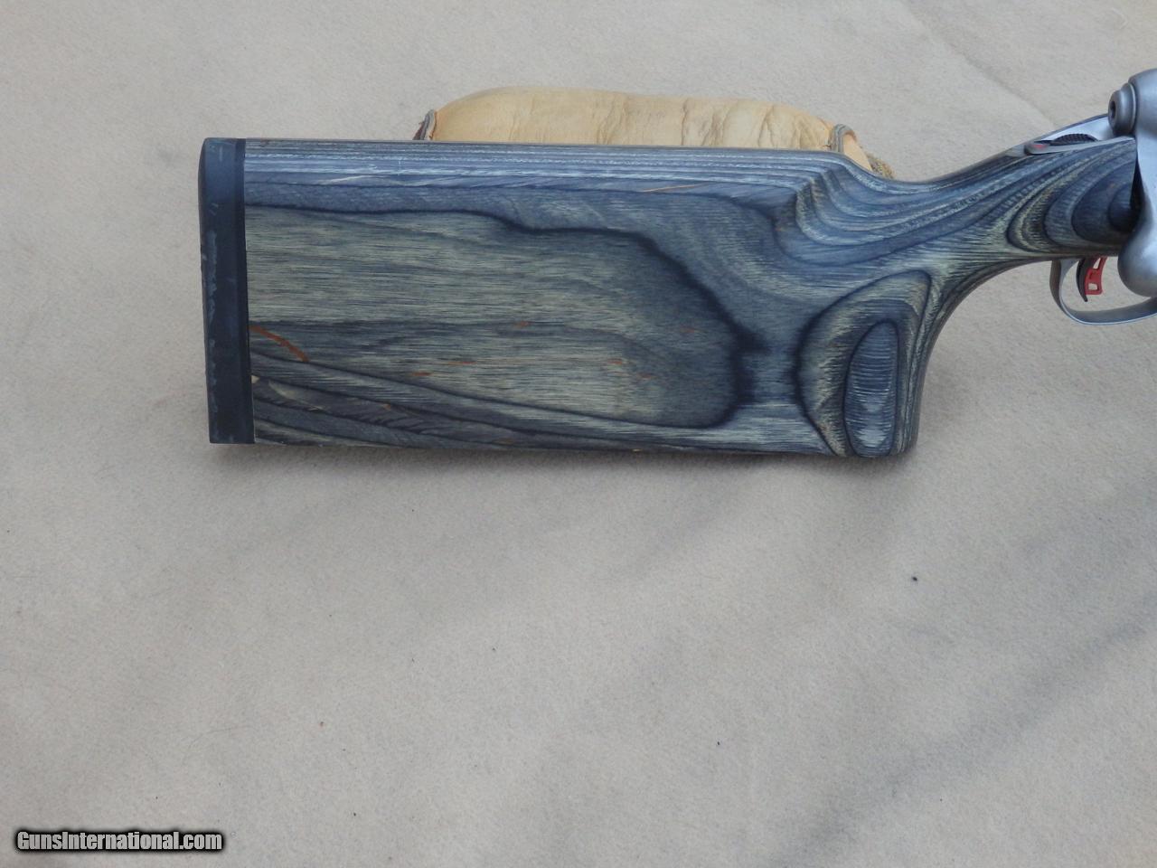 Description: Savge M12 Benchrest rifle in 6.5x284 Norma. 30" stainless steel barrel. 13 1/2 lbs. Stock is laminated, benchrest style with wide, ventilated forend, and flat toe line and is in excellent condition. Borescope examination of barrel shows overall excellent condition. Throat is smooth with no heat checking or erosion and beginning of lands is sharp. There are a couple areas of superficial surface rust on the barrel's exterior. These were buffed with ScothBrite pad. Light rust also on bolt knob, bolt release, and bolt body. Buffing with ScotchBrite cleaned up bolt body and left no pits. Rifle was stored with oiled bore and a clean, dry exterior in Florida where high humidity caused the light rust. Rust does not effect rifle's function in any way and was never present in bore. Comes with factory box and reloading dies & brass. Buyer pays actual shipping to his FFL. Rifle being sold due to health reasons of owner. SOLD |