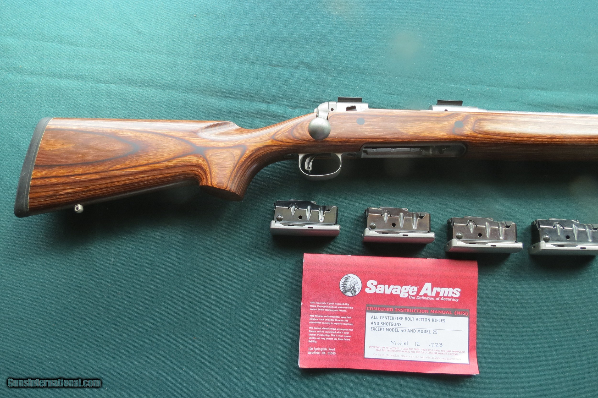Description: Savage Model 12 Long Range Precision Varminter Repeater in 223 Remington, 27.5" Fluted Stainless Steel barrel w/muzzle break, Stainless action, 4 - 4 shot detachable magazines, AccuTrigger, Oversized bolt handle, Brown laminated stock, Owners manual, Weaver bases. Rifle shows to be in like new condition. Shipping/insurance $70. Ships in Flambeau hard case. SOLD Rifle Caliber: .223 Remington Manufacturer: Savage Model: Model 12 Long Range Precision Varminter Barrel Length: 27.5" w/muzzle break Condition: Like new |