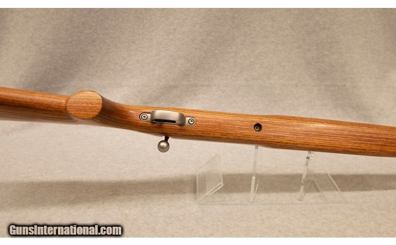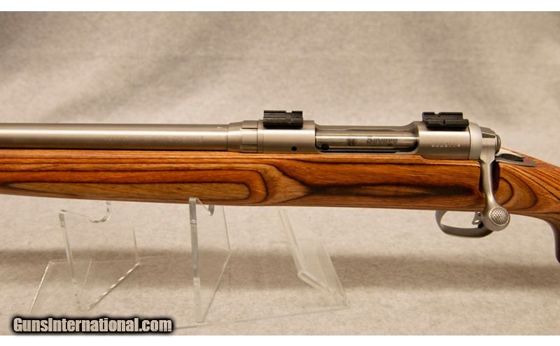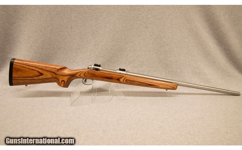 Description: Savage Model 12 Varminter, chambered in .204 Ruger, with a 4 round internal magazine. Features include: short action, 26 in. fluted stainless heavy barrel and action, smaller ejection port on left side of receiver, AccuTrigger standard, low profile brown laminated stock with extra wide beavertail forend, no sights, oversized bolt handle. Scope mounts are attached. Stock does have a few scuffs below the receiver. .204 Ruger SOLD Chambers: .204 Ruger Metal Condition: Good Wood Condition: Good Bore Condition: Good Barrels: 26' Stock Dimensions: 14' Butt Pad: Rubber Sights: None Item Location: Fort Mill, SC |