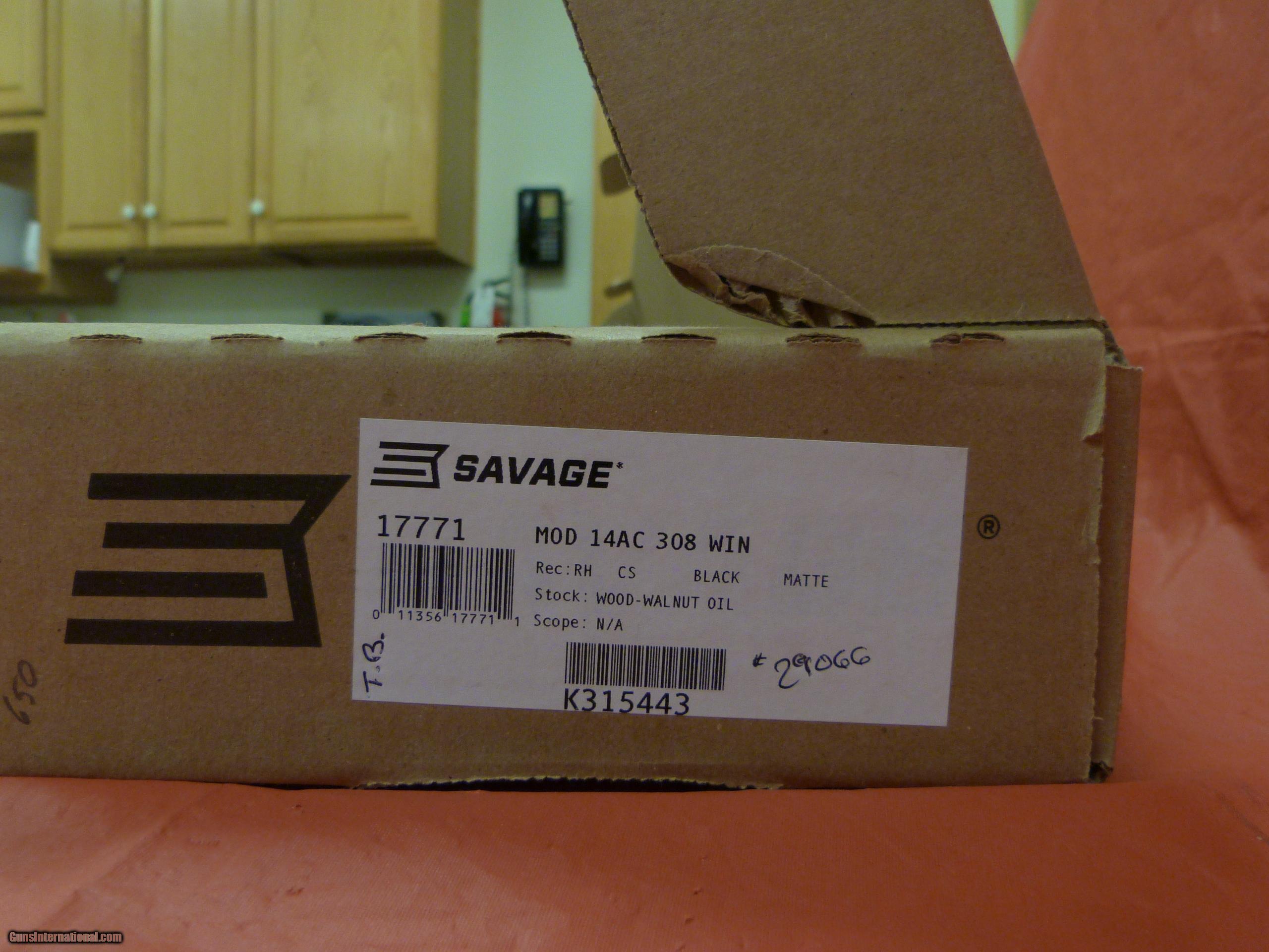 Description: Savage model 14 American Classic 308, brand new in box, wood stock, Savage #17771 RH, with accutrigger. 1 in 10" twist, 7lbs. 22" bbl. Holds 4 rds. Only $625 $40 shipping and no 3% cc fees. Please ask for Steve or Bob when calling 716-833-2581 or 716-835-1546. SOLD Manufacturer: Savage Model: 14 American Classic Caliber Info: 308 Condition: NIB Barrels: 22 |