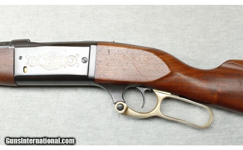 Description: Excellent condiiton, light wear, few small nicks and scratches. Lever action hunting rifle, 22" octagon barrel, smooth action, crisp trigger, and factory iron sights. Smooth wood stock & forend, gold finished lever & curved metal butt plate, and sling swivels. .308 Winchester SOLD Chambers: Lever action Metal Condition: Excellent Wood Condition: Excellent Bore Condition: Bright Barrels: 22 Triggers: Factory Stock Dimensions: 13 1/2" LOP Fore End: Smooth Butt Pad: Curved metal butt plate Sights: "Buckhorn rear, blade front sights Item Location: La Vista, NE |