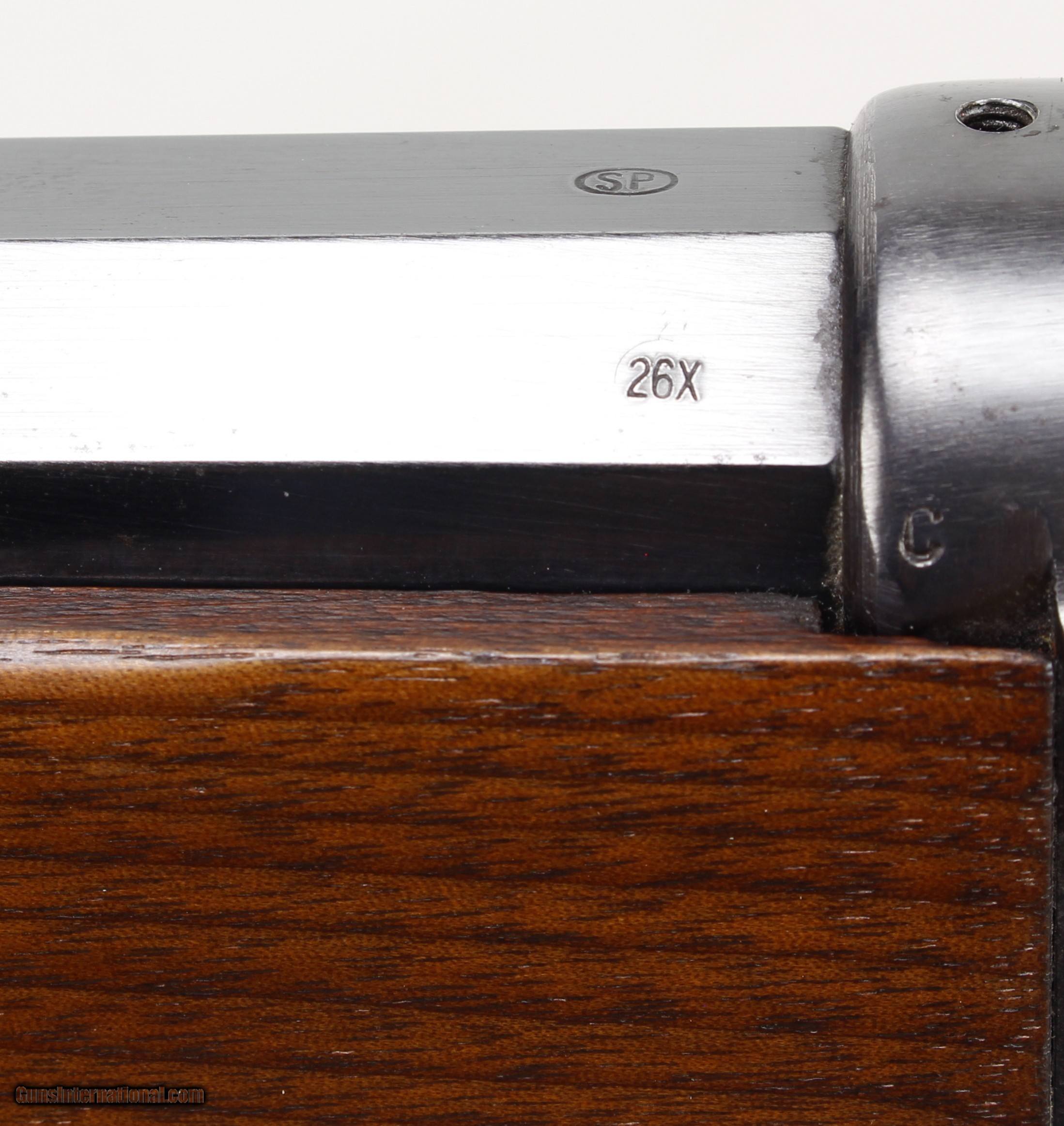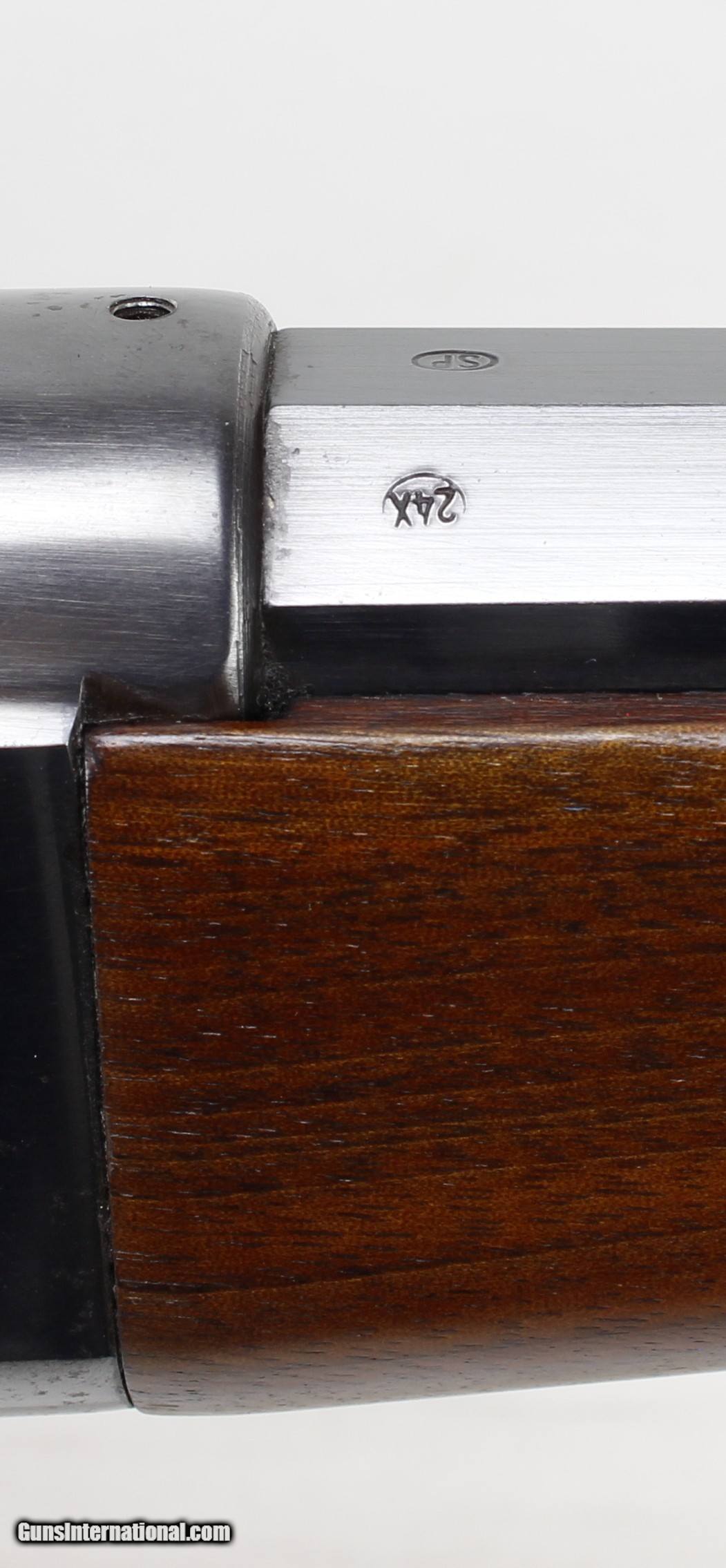 Description: Savage Model 1895 75th Anniversary Rifle in .308 Win. SN #6282AS. Mfg. in 1970. LOP 13 1/2". 26" Octagon barrel with an excellent bore. Blued barrel and receiver are in very good condition. Walnut stock is also in very good condition with some light handling marks on the stock. Brass lever has some slight wear. Brass crescent buttplate. Cocking indicator. Round counter. Tapped for scope. Savage Arms engraved on both sides of receiver. Savage Arms 75th Anniversary Chief's Head Medallion on right side of stock. Weight 8.3 lbs. Trigger pull 5 1/2 lbs. Ships to Lower 48 W/ Insurance $45.00. SOLD Curio/Relic: Yes Rifle Caliber: .308 Winchester Manufacturer: Savage Model: 1895 75th Anniversary Serial Number: 6282AS Barrel Length: 26 Condition: VG Metal Condition: VG Wood Condition: VG Bore Condition: Excellent LOP: 13 1/2 Finish: Blue / Brass Weight: 8.3 lbs Manufacture Date: 1970 |