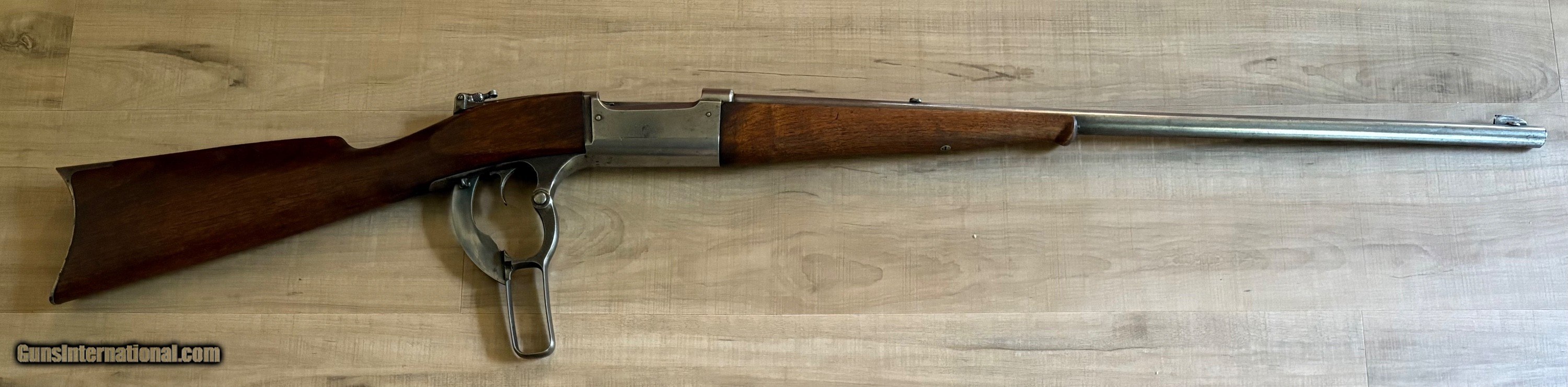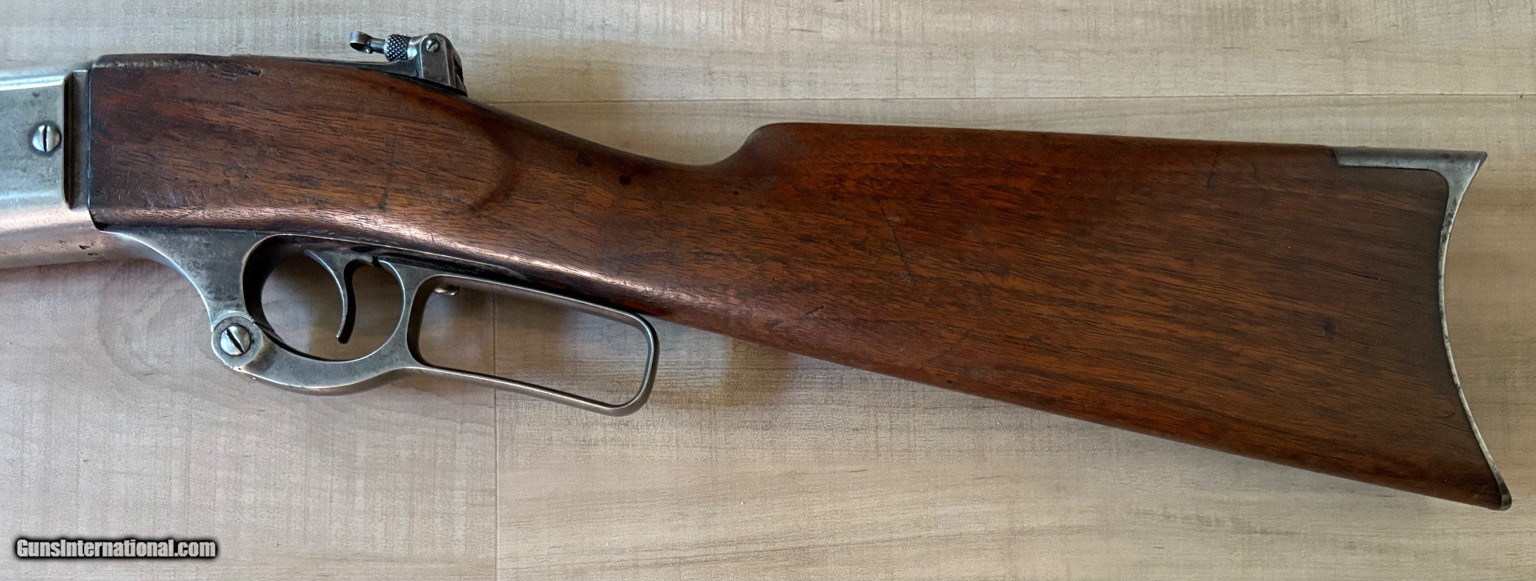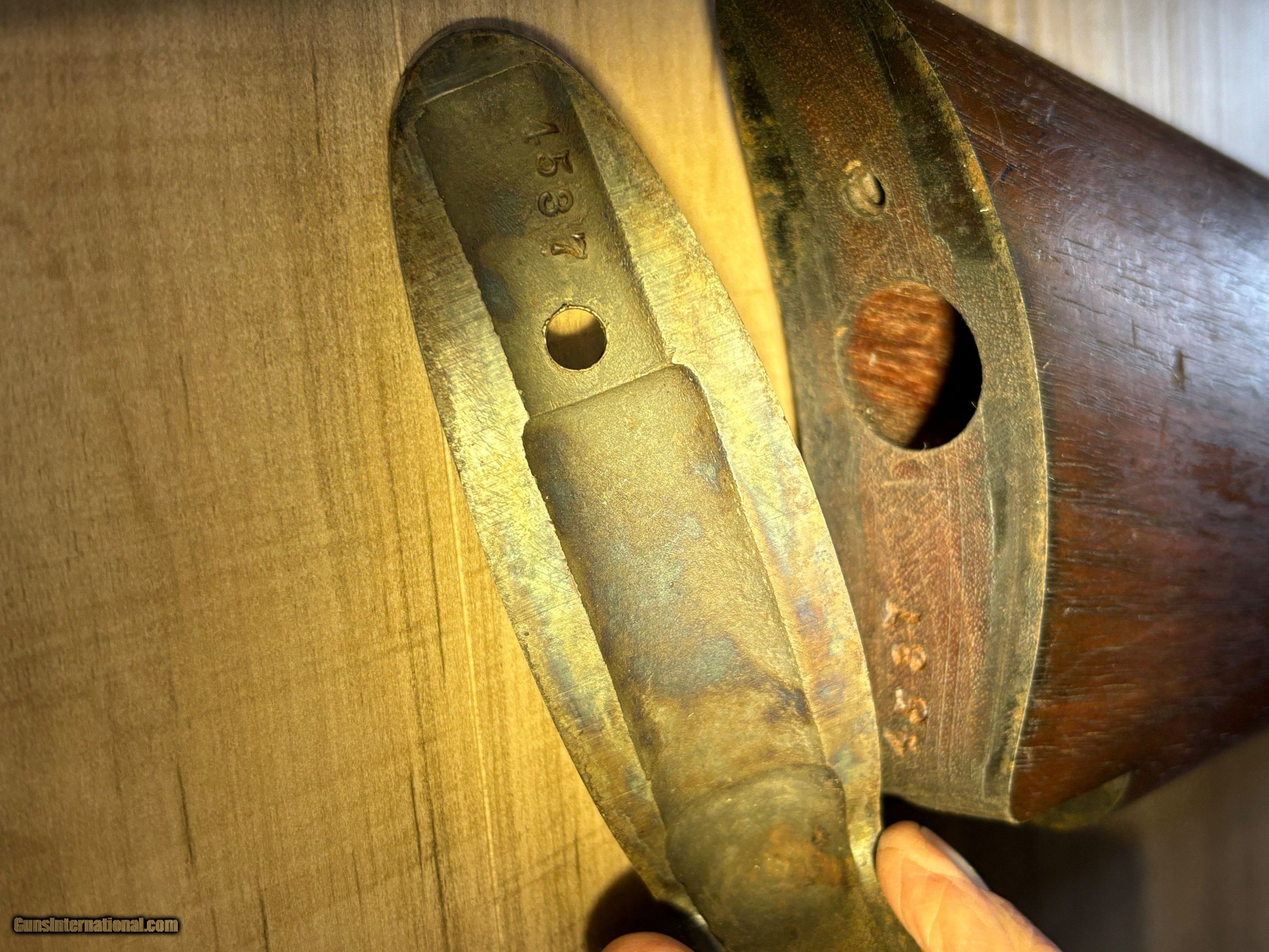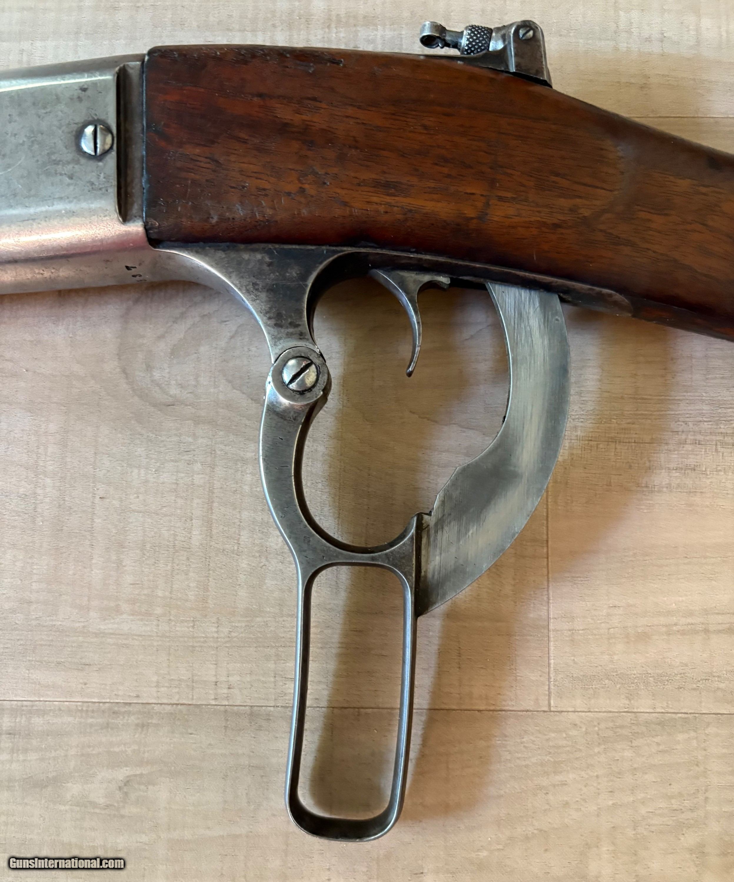 Description: This is a nice antique Savage 1895 rifle. The butt plate and stock match the serial number on the receiver as number 4537. The round 26 inch barrel has the JM stamp for the Marlin Co. that made the barrel. The bore is shiny with excellent rifling. The safety and cocked indicator is the hole in the top of the bolt and works correctly. The brass cartridge indicator on the side of the receiver shows the number of shells in the receiver. The barrel has faded blue patina and the receiver is clear with no bluing. There are no pits or rust. The lever still has some of the case hardening. The forearm number doesn't match the serial number. The front sight is the original Marlin Shear number 9 Rocky Mountain sight. The rear sight is a blank because of the tang sight which is a number 18 Savage combination rear sight from Lyman number 1 combination tang sight. The action is strong and locks up tight with no slack in the lever. It will take a 90 grain bullet and out perform a 30-30. Shipping and insurance to your residence $60.00 SOLD Antique: Yes Rifle Caliber: .303 Savage Manufacturer: Savage Model: 1895 Serial Number: 4537 Barrel Length: 26 inches Condition: Good Metal Condition: Fair Wood Condition: Good Bore Condition: Excellent Sights: Lyman No. 1 Tang |