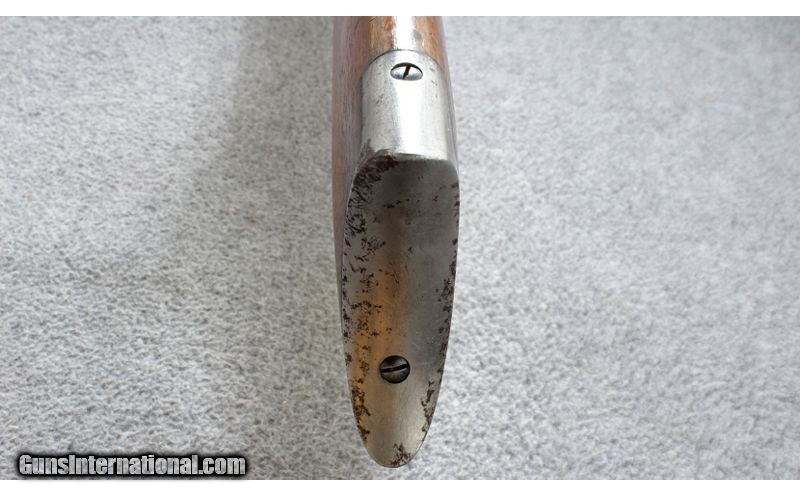 Description: The Savage 1899, with its famous rotary magazine, was a lever action designed to handle modern spire pointed centerfire cartridges. This Savage 1899A .303 Sav. shows very well and would be a good addition to any collection. Manufactured 1912. .303 Savage SOLD Curio/Relic: Yes Metal Condition: Fair, with scratches, finish wear and some light pitting Wood Condition: Fair with scratches, dents, bruising and some chips Bore Condition: Good, bright and sharp Barrels: 26 inch round barrel Stock Dimensions: 13 inch LOP Fore End: Walnut fore end with Schnabel tip Butt Pad: Steel crescent plate Weight: 7 lbs. 15 oz. Sights: Redfield receiver sight and Rocky Mountain front blade Item Location: Lehi, UT |