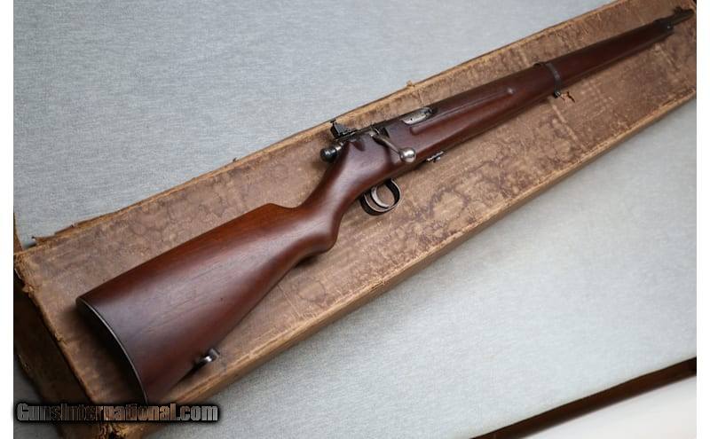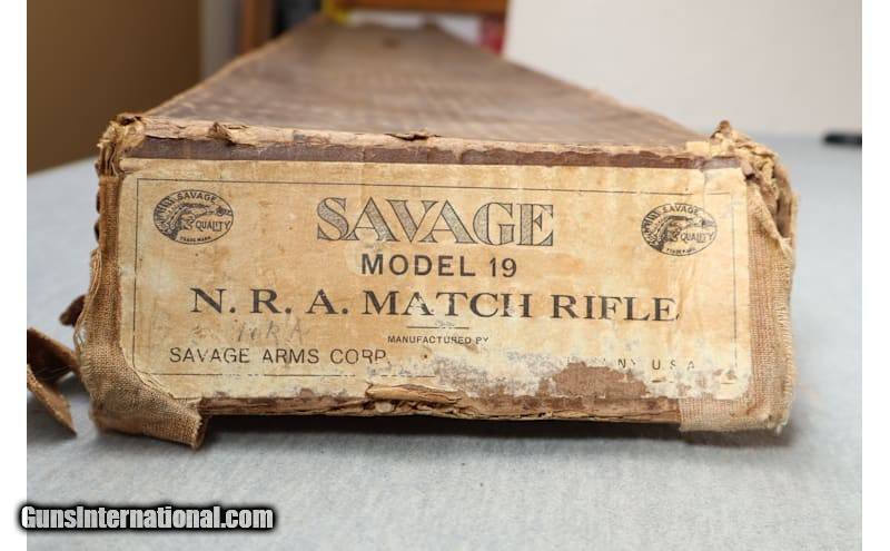 Description: Smallbore competition saw a tremendous jump in popularity after World War I, and manufacturers gave considerable attention to developing match-grade rifles. Working with the NRA and competitive shooters on the design of a new rifle, Savage Arms introduced the "Model 19 N.R.A. Match Rifle" in—appropriately enough—1919. Savage manufactured about 40,000 Model 19 NRA (so-stamped on barrels) rifles by 1937. Another 6,000 went to the War Department from 1943 into 1945. The Model 19 NRA's stock was of military configuration, with finger grooves in the fore-end and sling swivels that made "the arm particularly adaptable to firing from the various standard positions incorporated in matches of the National Rifle Association," according to a circa 1925 Savage Arms catalog. This Savage Model 19 N.R.A. Match Rifle is a right hand bolt action gun in .22 Long Rifle Cal. It has a 25 inch barrel. A blade front sight and an adjustable aperture rear sight. The butt stock is a smooth grip walnut pistol grip. The forearm is a smooth grip walnut with finger grooves and a barrel band. S/N 29146. .22 Long Rifle Rifle comes with one magazine and the original box. The box is in rough shape but to have the original box is rare. .22 Long Rifle SOLD Metal Condition: good Wood Condition: good Bore Condition: bright Barrels: 25" barrel Stock Dimensions: 13.75 Fore End: smooth wood Butt Pad: metal Weight: 6 lb - 12 oz. Sights: A blade front sight and an adjustable aperture rear sight. Item Location: La Vista, NE |